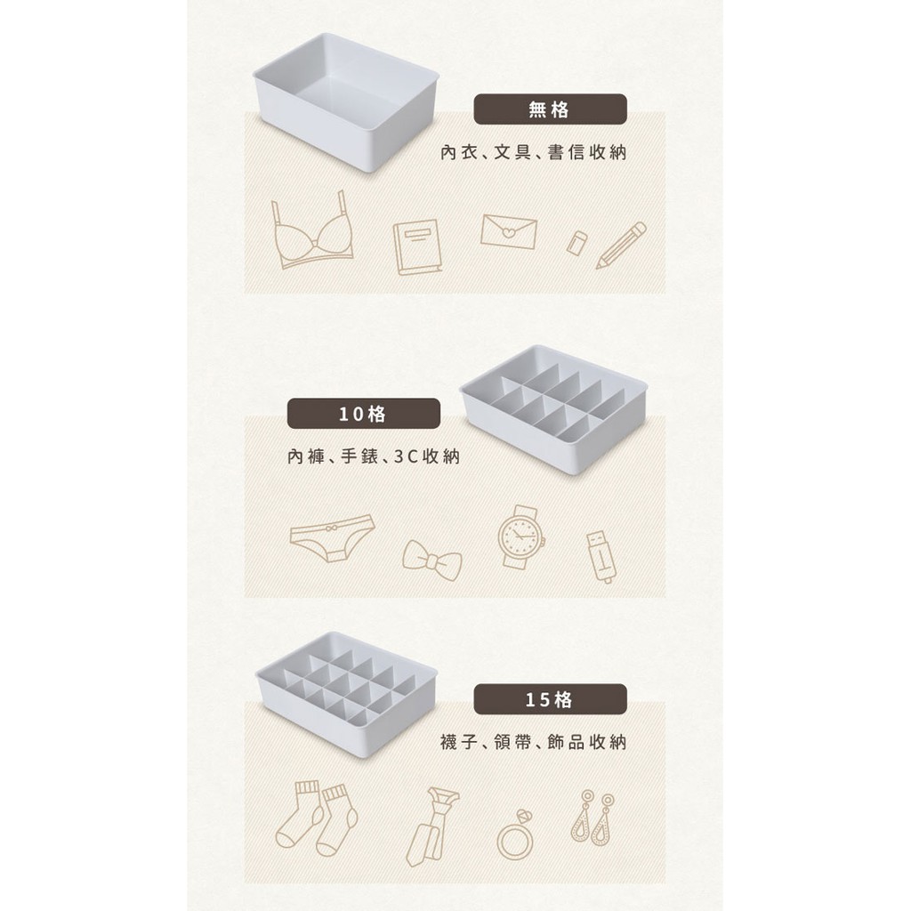 清新生活磨砂內衣小物防塵收納密封盒【IDEA】無格灰色 1入|10格灰色 1入|10格白色 1入Wardrobe Organizers【IDEA】視覺概念