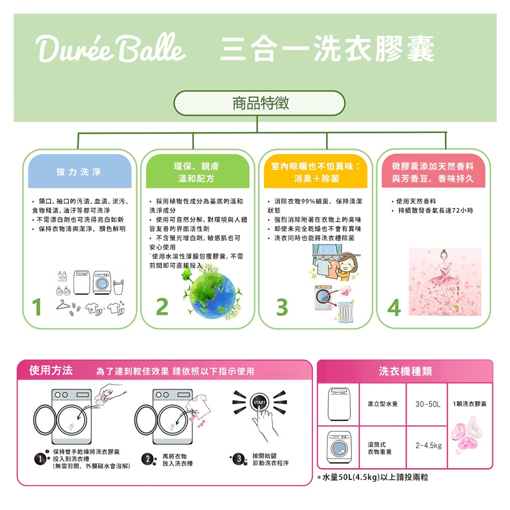 Duree Balle-三合一洗衣球-5顆 洗衣/柔軟/芳香 一次搞定-(清新香水/自然花香/藍玫瑰)清新香水-5入|自然花香-5入|藍玫瑰-5入Laundry CareB&H 多立康保健食品、日本John’s Blend香氛、日用雜貨專賣店