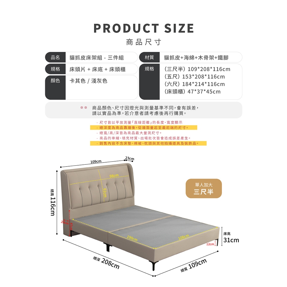 米森質感貓抓皮床架組/房間組(床頭+床底+床頭櫃)三尺半 五尺 六尺【IDEA】淺灰色款,6尺雙人加大二件組(床頭+床底)|淺灰色款,3.5尺單人加大三件組(床頭床底床頭櫃)|淺灰色款,5尺標準雙人三件組(床頭床底床頭櫃)|卡其色款,5尺標準雙人二件組(床頭+床底)|卡其色款,6尺雙人加大二件組(床頭+床底)|卡其色款,3.5尺單人加大三件組(床頭床底床頭櫃)|淺灰色款,3.5尺單人加大二件組(床頭+床底)|淺灰色款,6尺雙人加大三件組(床頭床底床頭櫃)|卡其色款,3.5尺單人加大二件組(床頭+床底)|卡其色款,5尺標準雙人三件組(床頭床底床頭櫃)|卡其色款,6尺雙人加大三件組(床頭床底床頭櫃)|淺灰色款,5尺標準雙人二件組(床頭+床底)|卡其色款,5尺標準雙人床頭片(運費*1)|卡其色款,6尺雙人加大床頭片(運費*1)|淺灰色款,5尺標準雙人床底(運費*2)|卡其色款,3.5尺單人加大床頭片(運費*1)|卡其色款,5尺標準雙人床底(運費*2)|淺灰色款,3.5尺單人加大床底(運費*2)|卡其色款,3.5尺單人加大床底(運費*2)|淺灰色款,5尺標準雙人床頭片(運費*1)|淺灰色款,6尺雙人加大床底(運費*2)|卡其色款,6尺雙人加大床底(運費*2)|淺灰色款,3.5尺單人加大床頭片(運費*1)|淺灰色款,6尺雙人加大床頭片(運費*1)Bed Frames & Headboards【IDEA】視覺概念