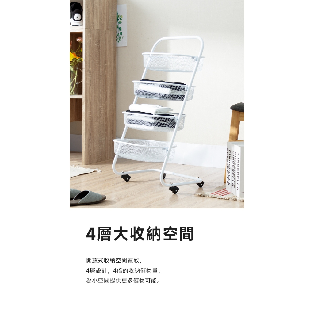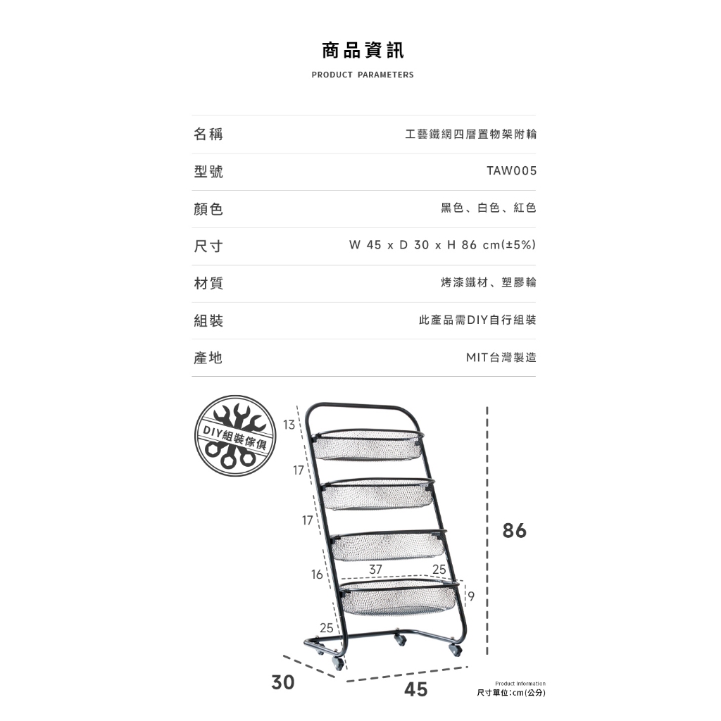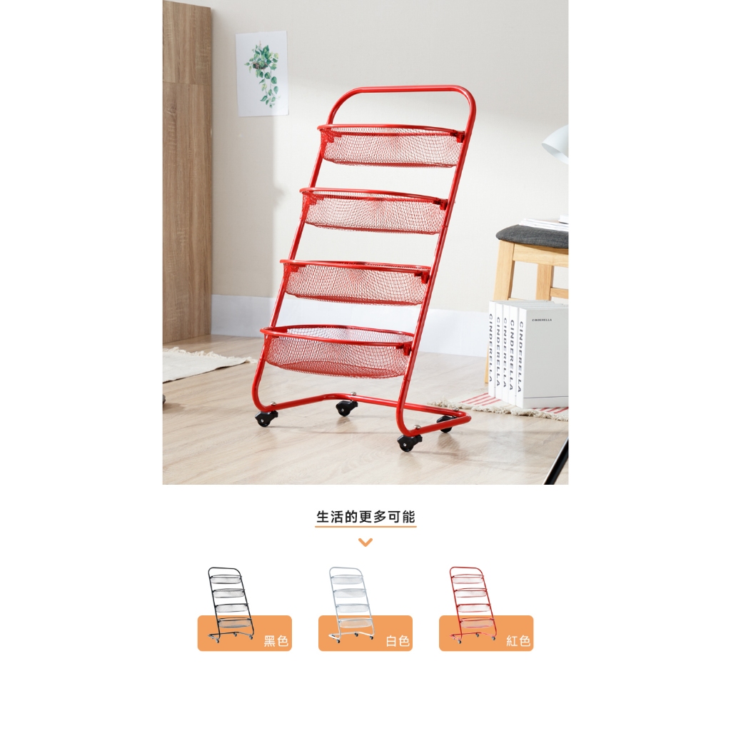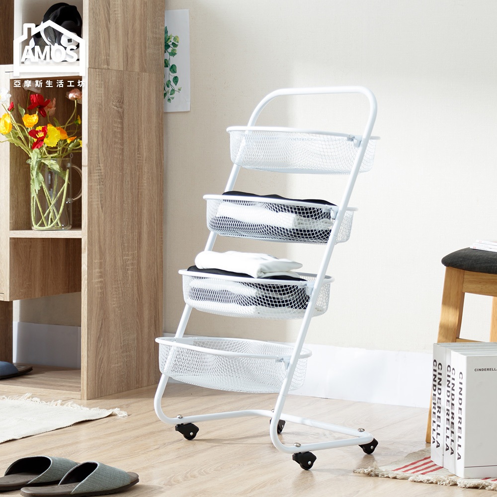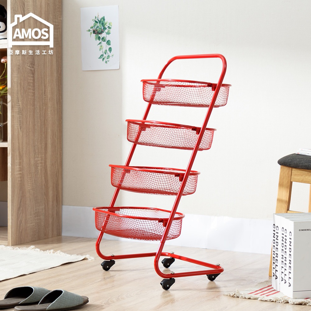 Amos 亞摩斯 工藝鐵網四層置物架附輪 收納架 置物架 收納車 推車 TAW005黑色|紅色|白色Shelves & RacksAmos亞摩斯