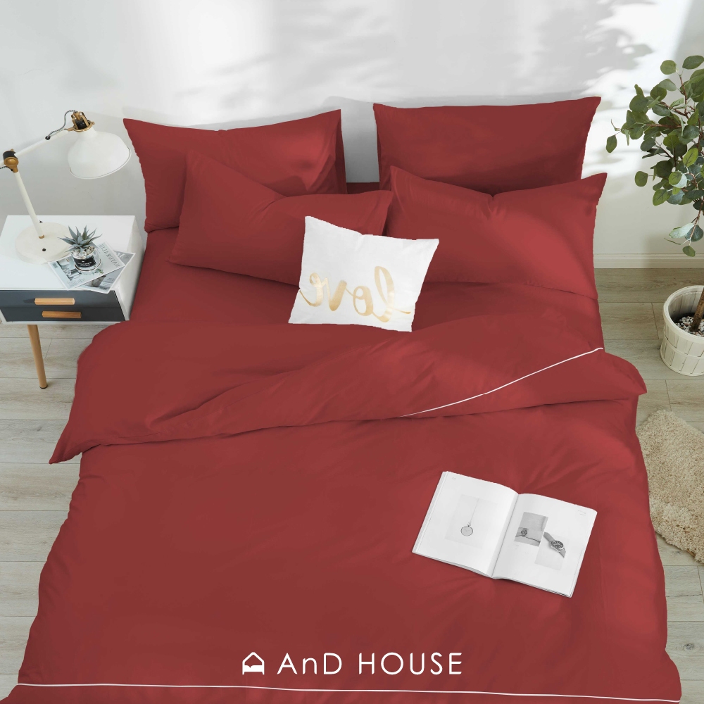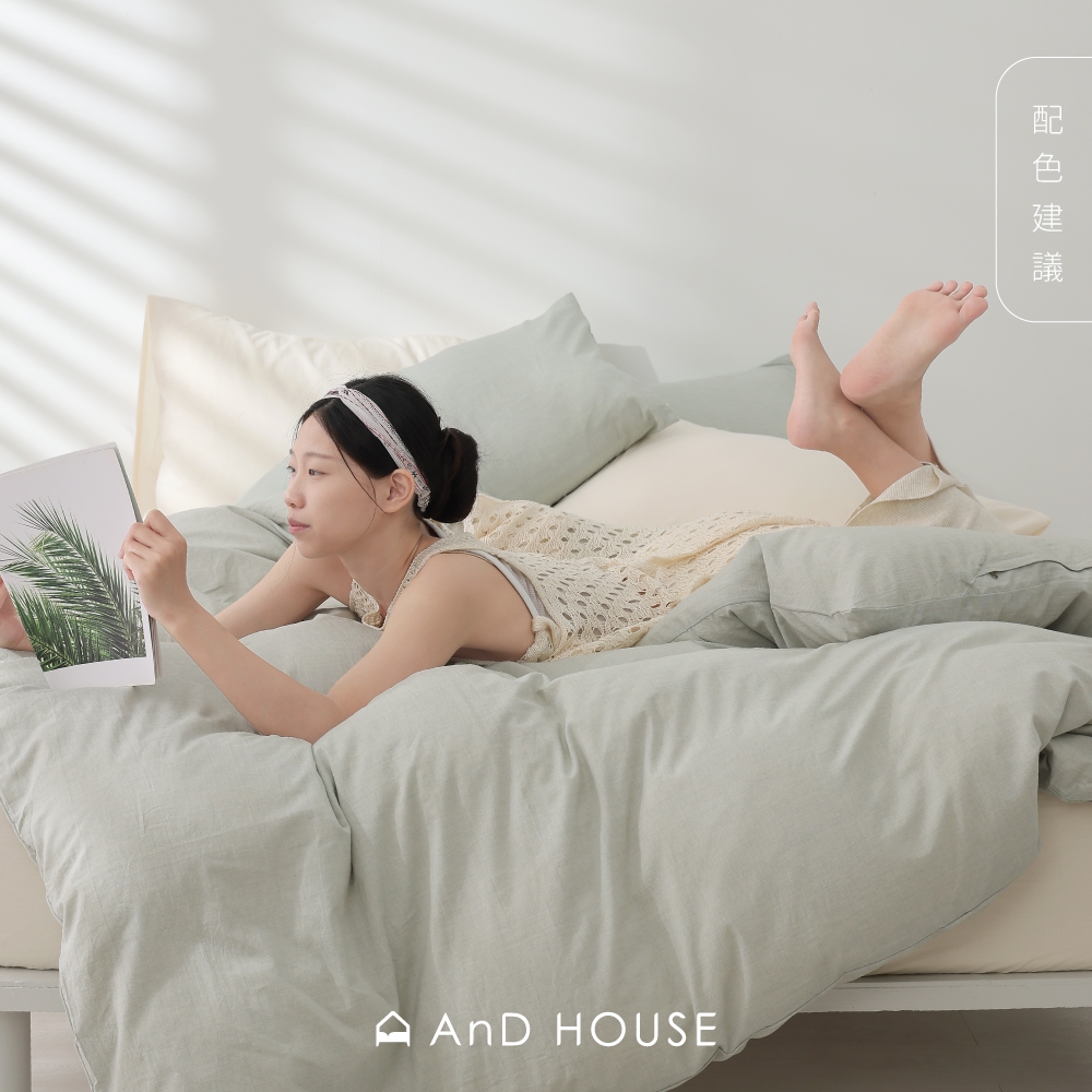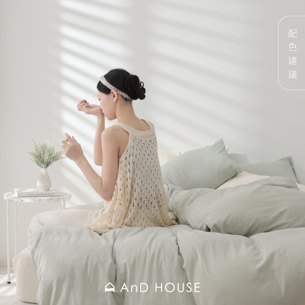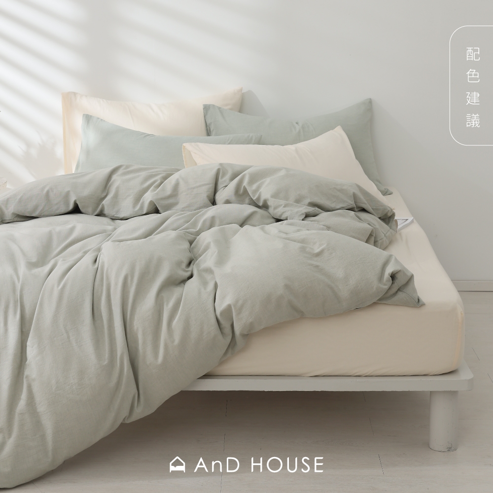 AnD House 新品上市|水洗棉-棉橙白-床包被套組|安庭家居 素色 顏色任搭