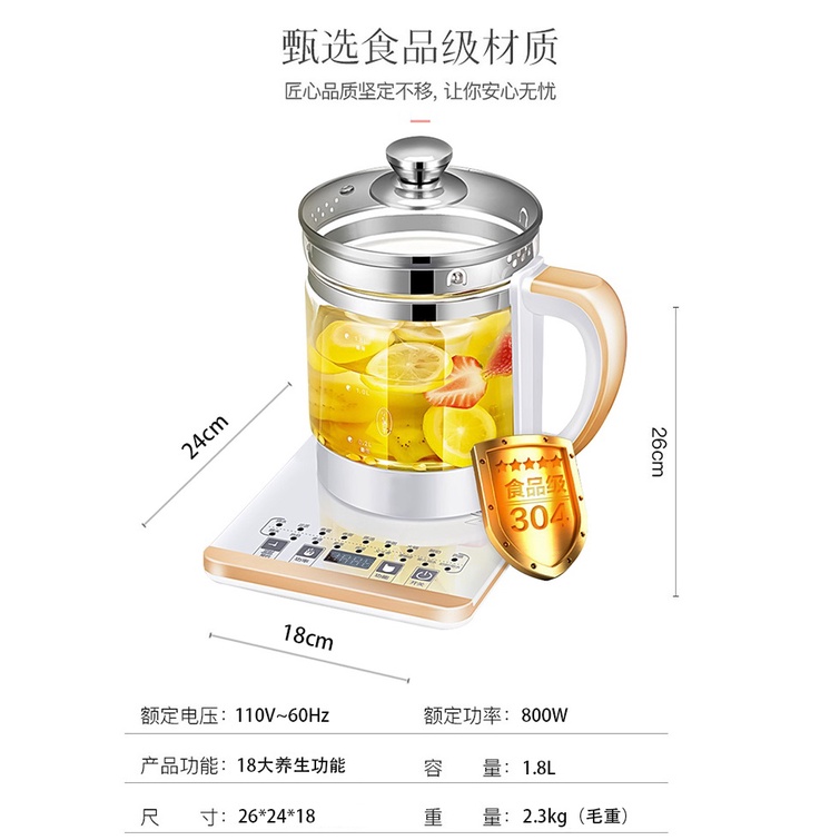 【津久見】24H快速出貨 110V 養生壺 全自動 加厚玻璃 多功能 電熱 燒水壺 花茶壺 黑茶煮茶 免運白金-(送蒸蛋架)帶濾網|黑金-(送蒸蛋架)帶濾網|白金-(送蒸蛋架)無濾網|白金(單壺)Tea Pots & Sets【津久見】官方旗艦店