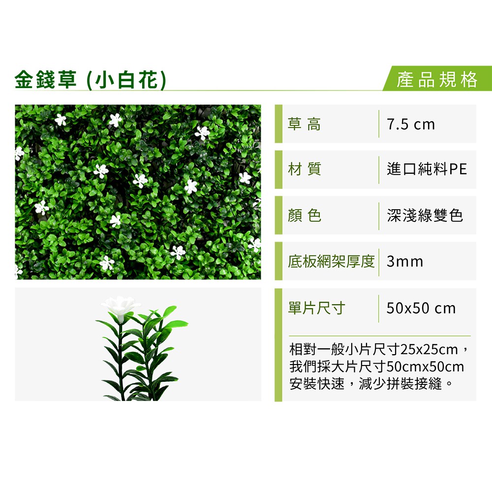 【草皮達人】金錢草 (小白花)-大片裝 仿真植物牆(350元/片,整箱10片特價3300元,大尺寸50cmx50cm【草皮達人】金錢草 (小白花)-大片裝 仿真植物牆(350元/片,整箱10片特價3300元,大尺寸50cmx50cmPlants【草皮達人】專業人工草皮批發與零售 MASTURF 人工草皮