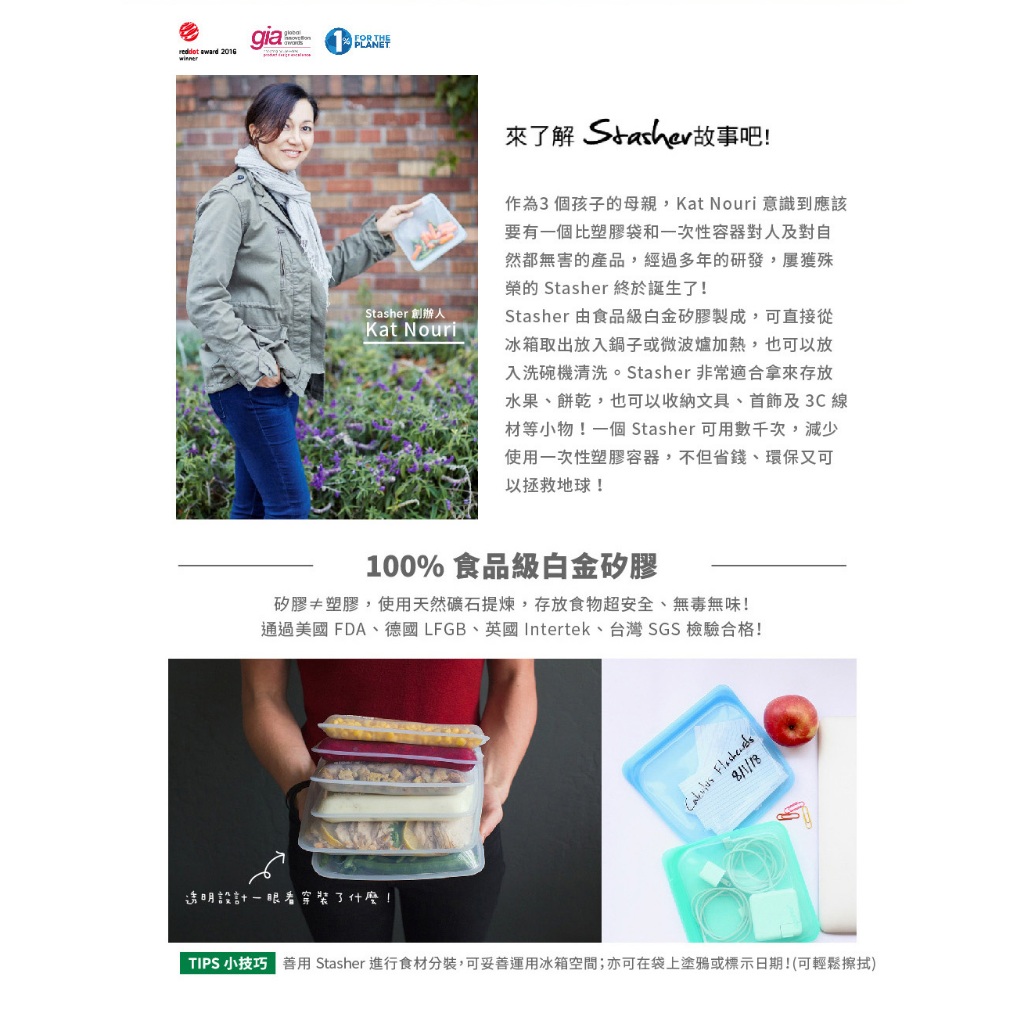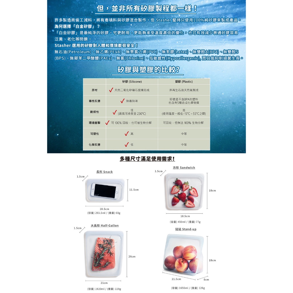 美國【Stasher】 福利品-白金矽膠密封袋-環保新潮袋【限量特殺】方形-雲霧白|方形-珍珠白|Go 隨行矽膠密封袋-雲霧白|長形-雲霧白|大長形-雲霧白|方形-紅|長形-湖水藍Others【原初生活】品牌餐廚用具/生活用品/按摩器材/3C家電