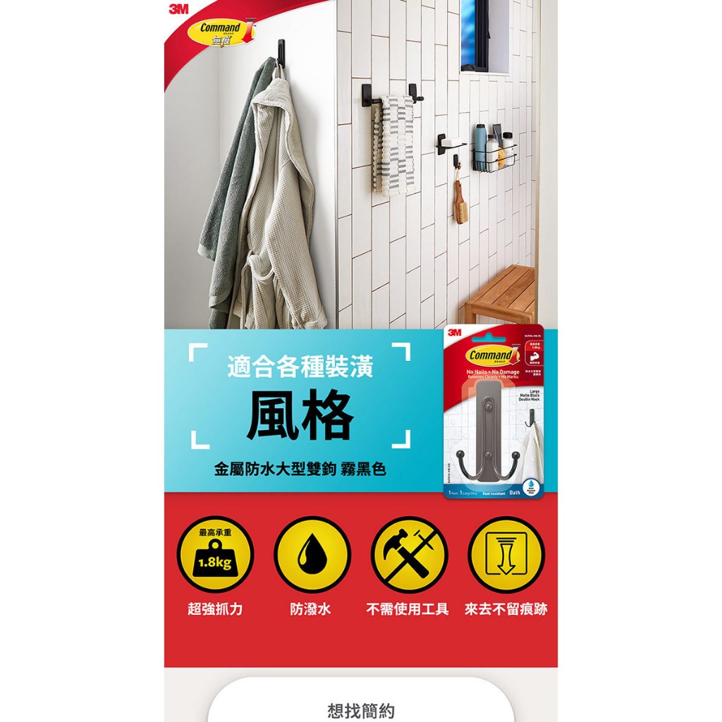 3M 無痕 金屬防水大型雙鉤-霧黑色3M 無痕 金屬防水大型雙鉤-霧黑色Hooks3M 授權官方旗艦館