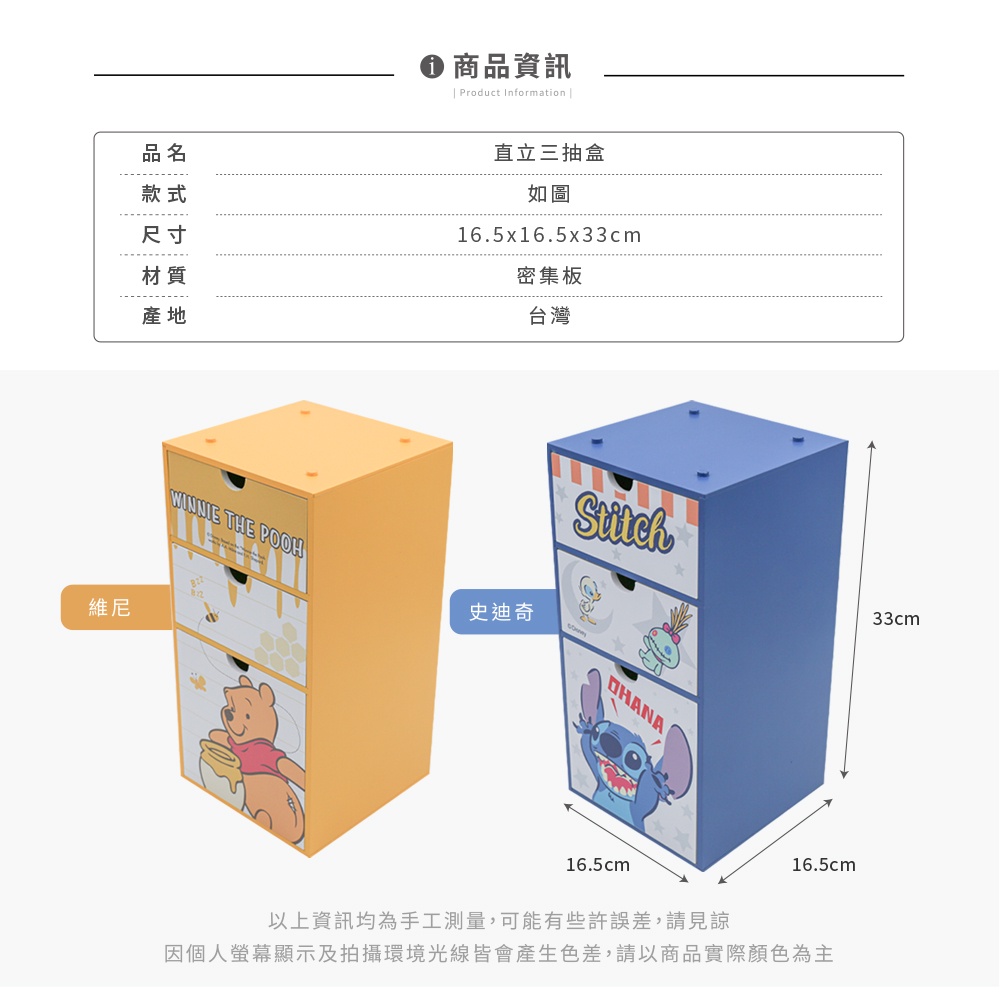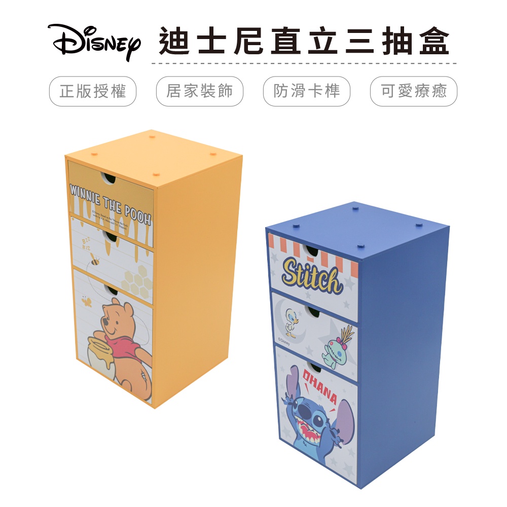 迪士尼 Disney 直立三抽盒 三層櫃 桌上收納盒 抽屜置物盒 小熊維尼 史迪奇【5ip8】HX0038史迪奇|維尼Desk Organizers5IP8居家生活館