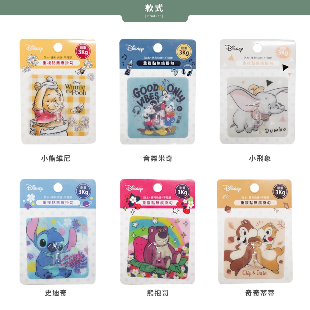迪士尼 Disney 無痕掛勾(中) 正版授權/奇奇蒂蒂/小飛象/維尼/史迪奇/米奇/熊抱哥 【5ip8】DN0327熊抱哥|奇奇蒂蒂|格子維尼|音樂米奇|小飛象|史迪奇Hooks5IP8居家生活館