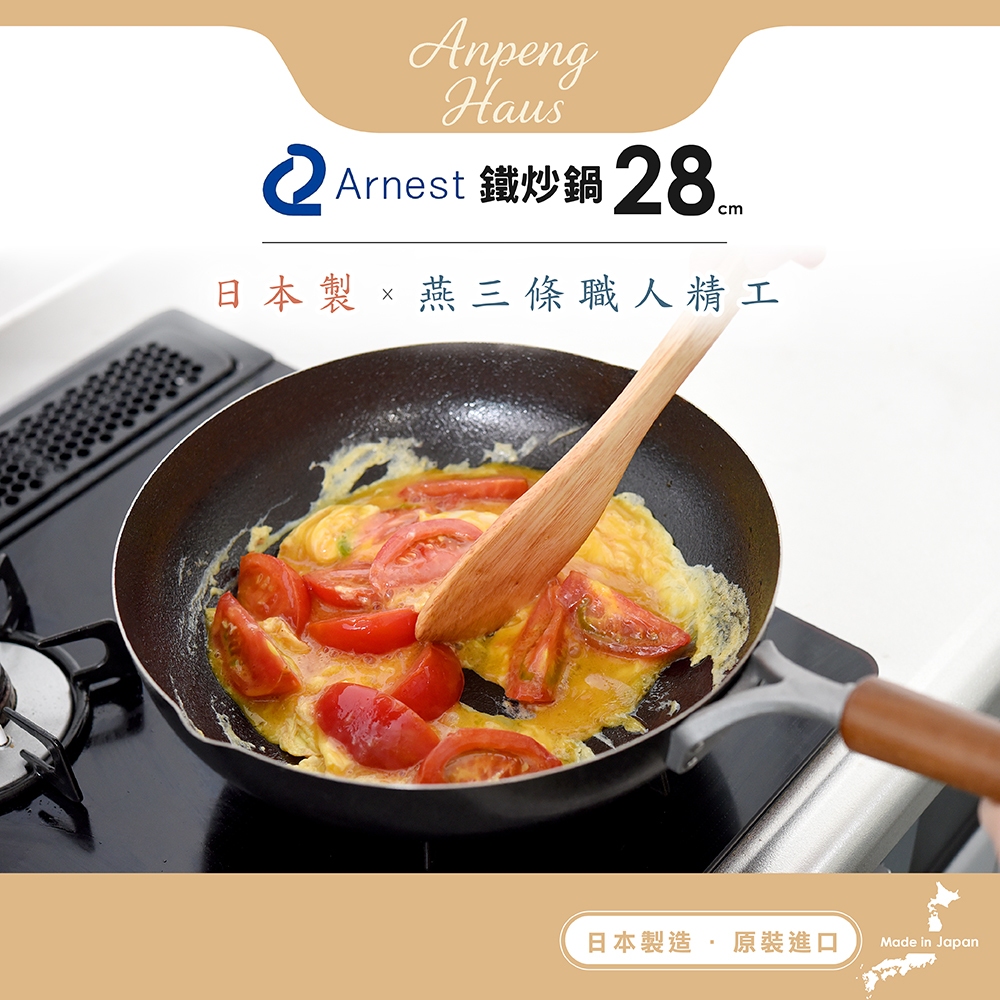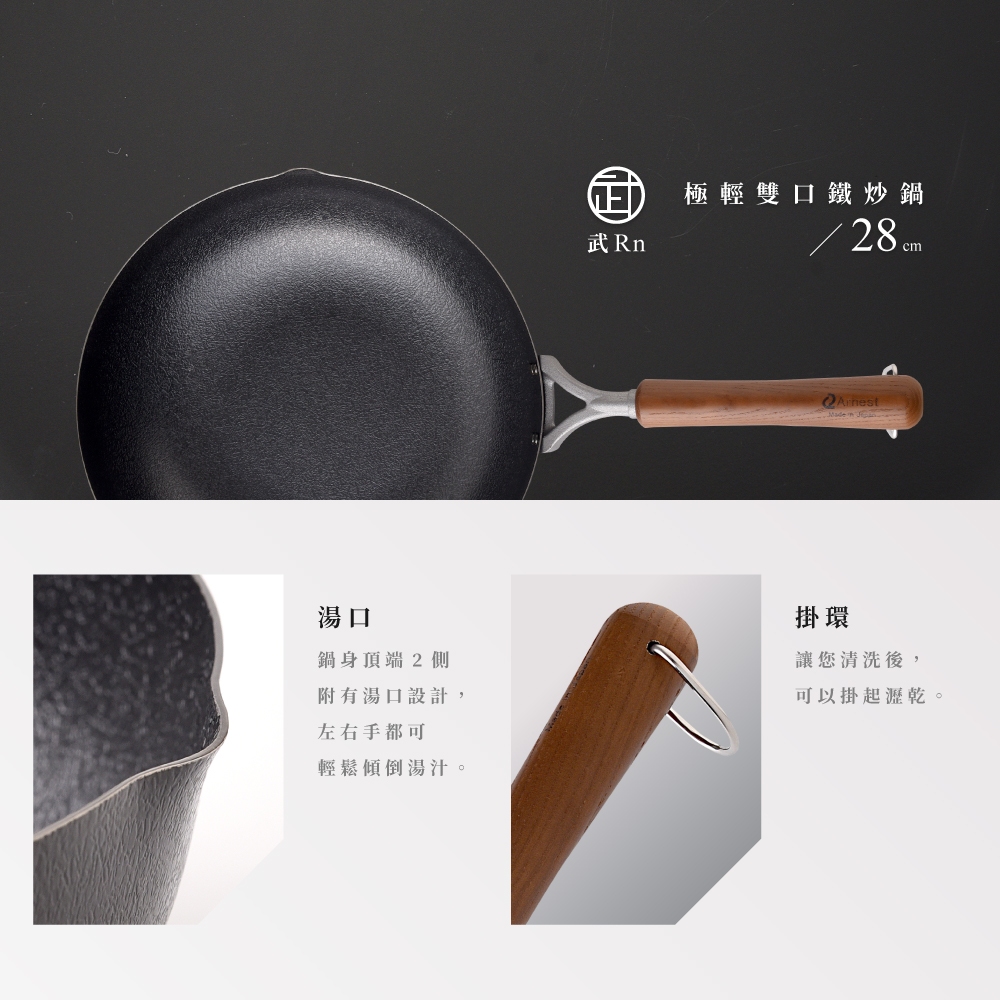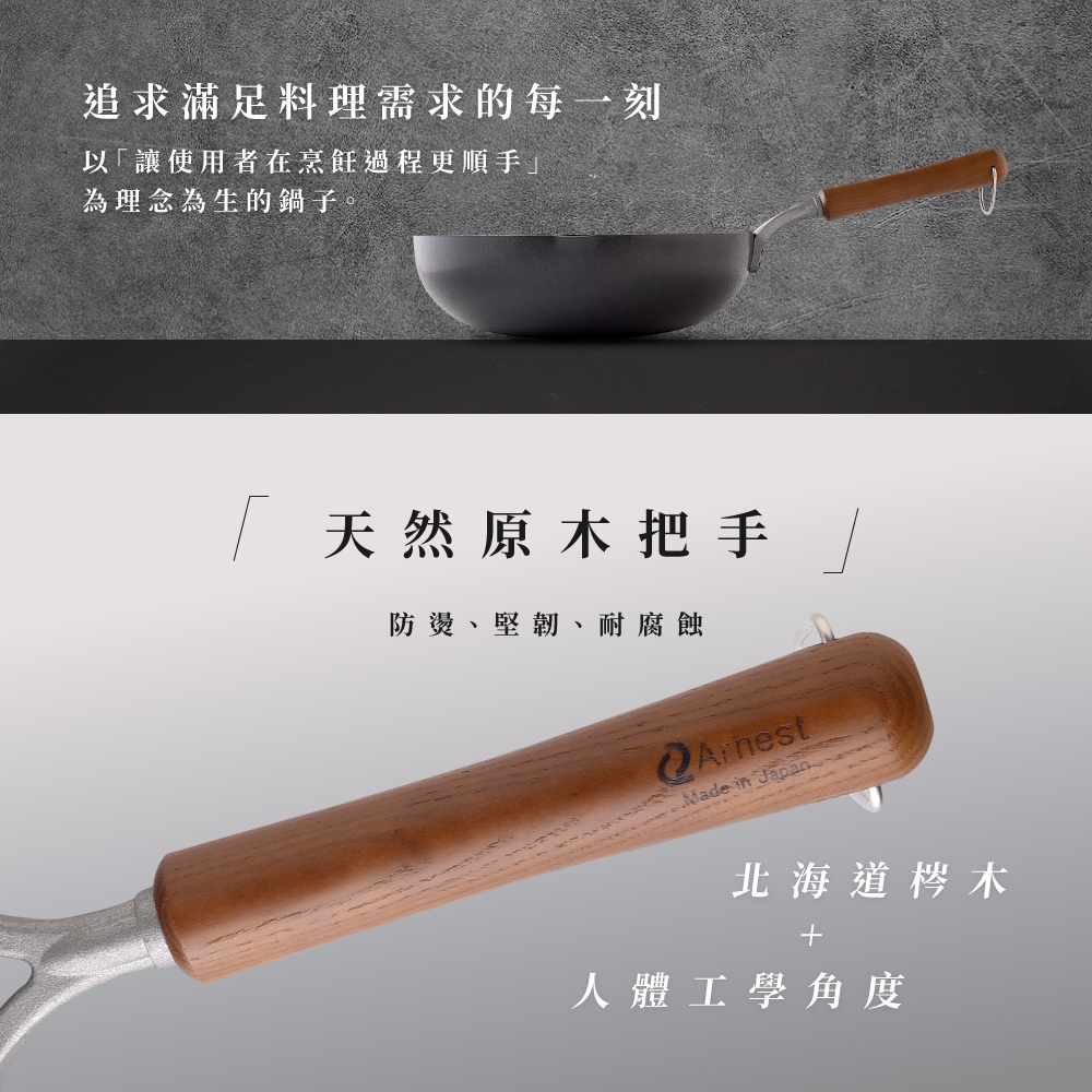 日本Arnest 武 Rn 和網紋輕量雙口鐵炒鍋-28cm(不挑爐具、日本燕三條職人打造,北海道梣木把手)含日製可立鍋蓋組|日製鐵鍋單鍋組|含不鏽鋼玻璃鍋蓋組PansAnpeng Haus