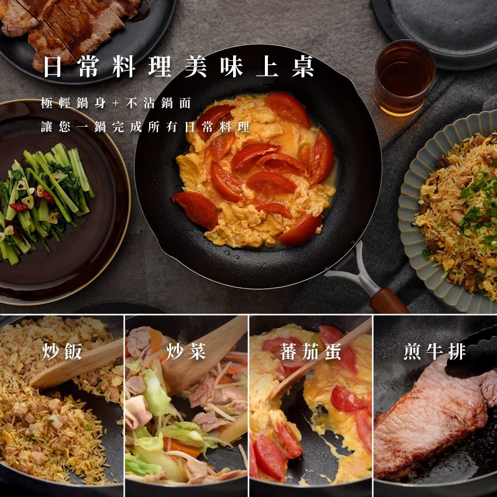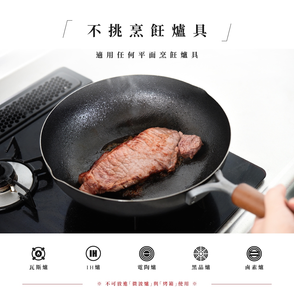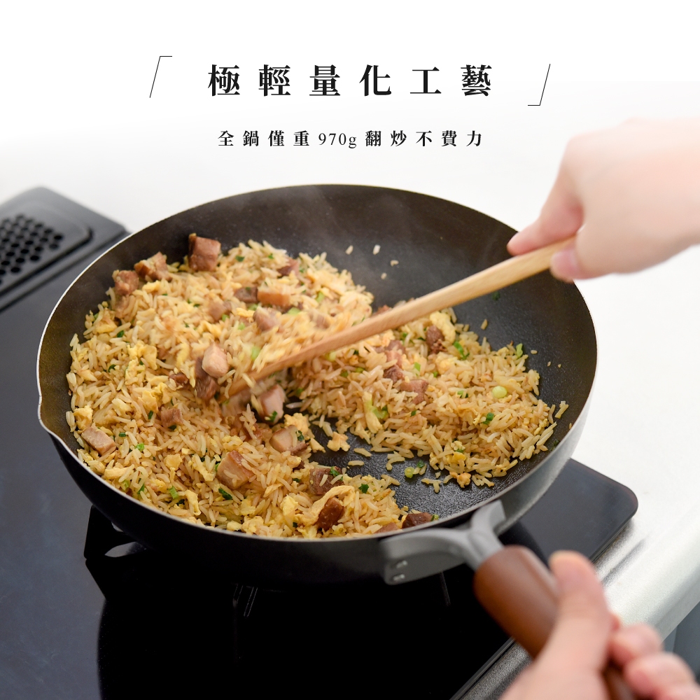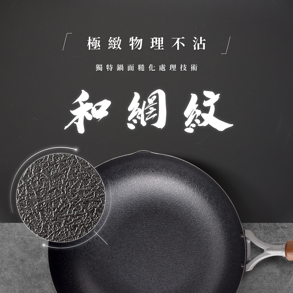 日本Arnest 武 Rn 和網紋輕量雙口鐵炒鍋-28cm(不挑爐具、日本燕三條職人打造,北海道梣木把手)含日製可立鍋蓋組|日製鐵鍋單鍋組|含不鏽鋼玻璃鍋蓋組PansAnpeng Haus