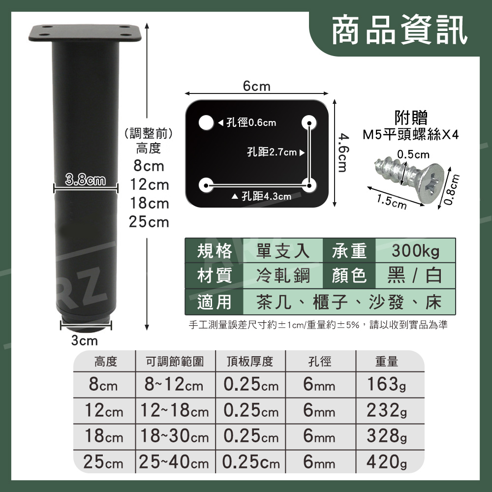 可調節家具增高腳墊【ARZ】【E052】冷軋鋼 支撐腳 沙發腳 桌腳 櫥櫃腳 床板支撐架 家具腳 支撐器 茶几 桌腿支架黑色,8~12cm|黑色,12~18cm|黑色,18~30cm|黑色,25~40cm|白色,8~12cm|白色,12~18cm|白色,18~30cm|白色,25~40cmOthersARZ行動商城