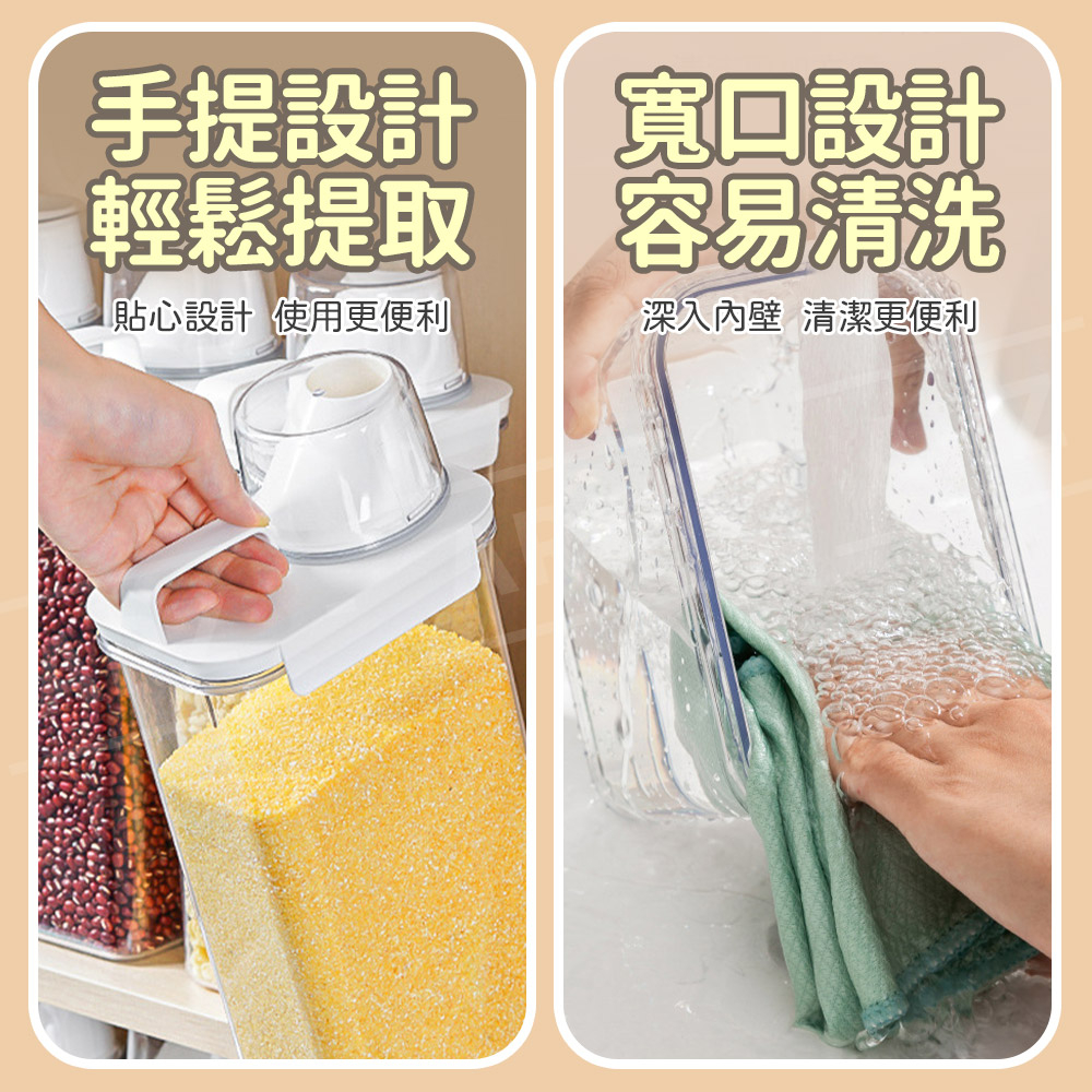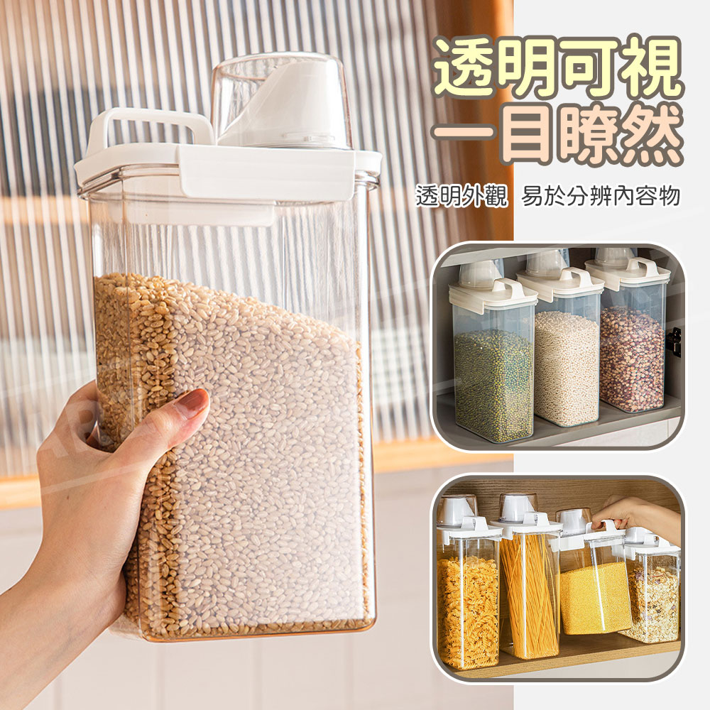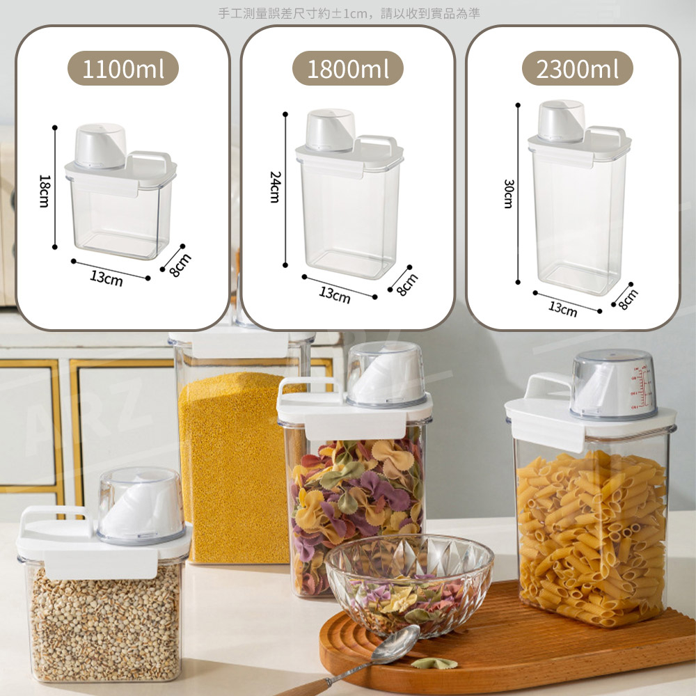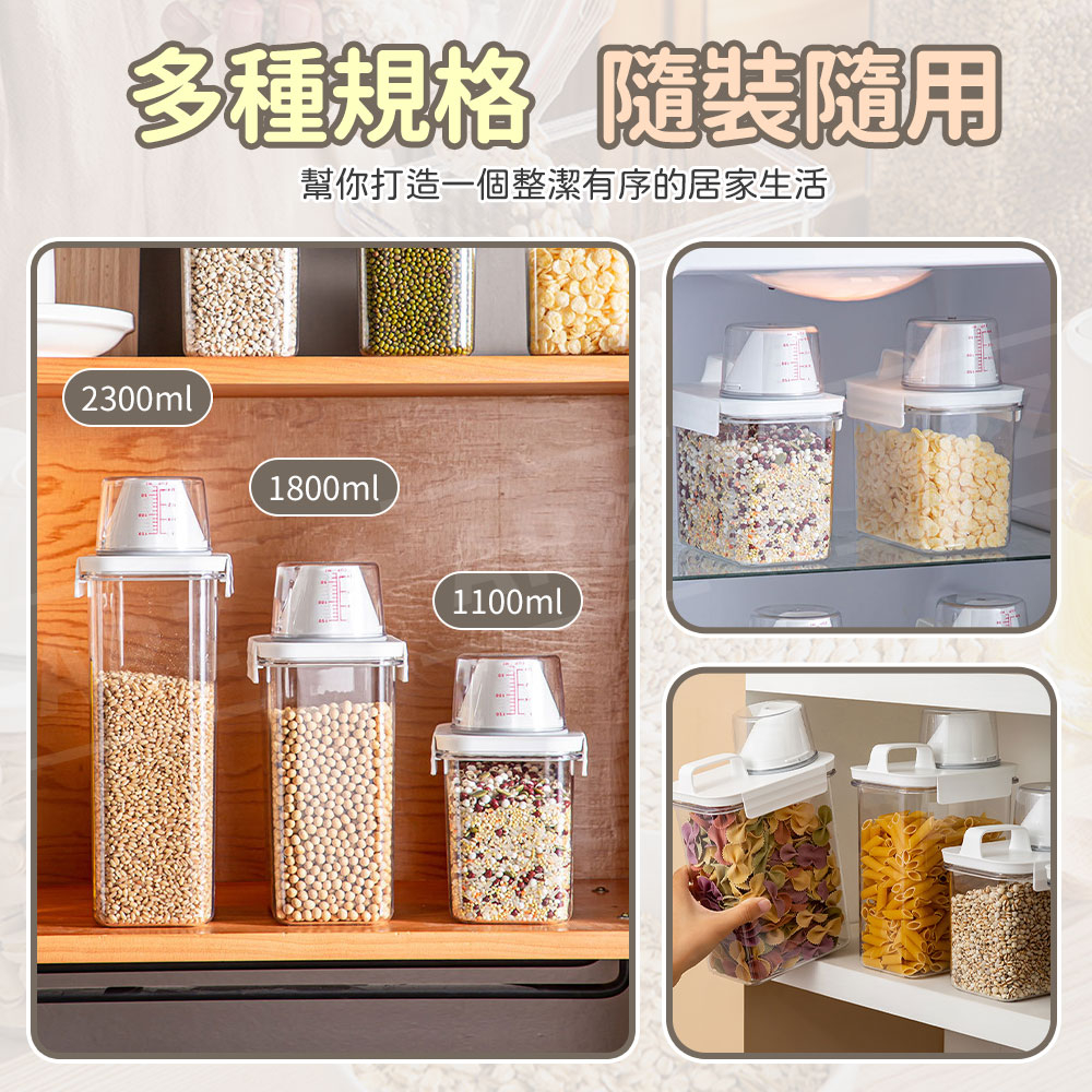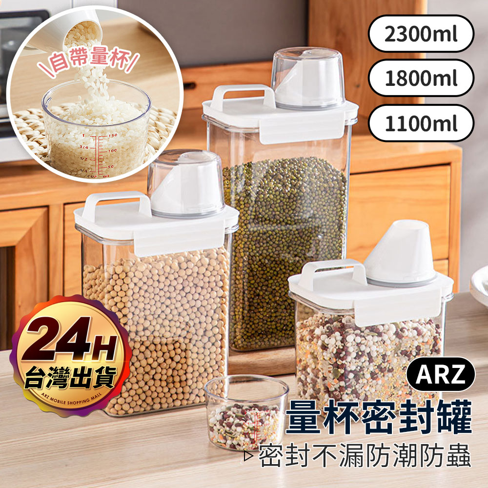量杯密封罐 保鮮密封罐【ARZ】【E154】雜糧罐 飼料罐 麥片 米罐 洗衣精收納 儲物罐 食品密封罐 義大利麵罐 米桶1100ml|1800ml|2300mlFood StorageARZ行動商城