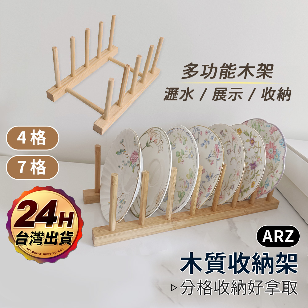 木質碗盤瀝水架 分隔架【ARZ】【E152】盤子架 書架 杯架 碗盤收納架 碗盤瀝水架 碗架 餐盤架 碗碟架 廚房收納架4格|7格Kitchen RacksARZ行動商城