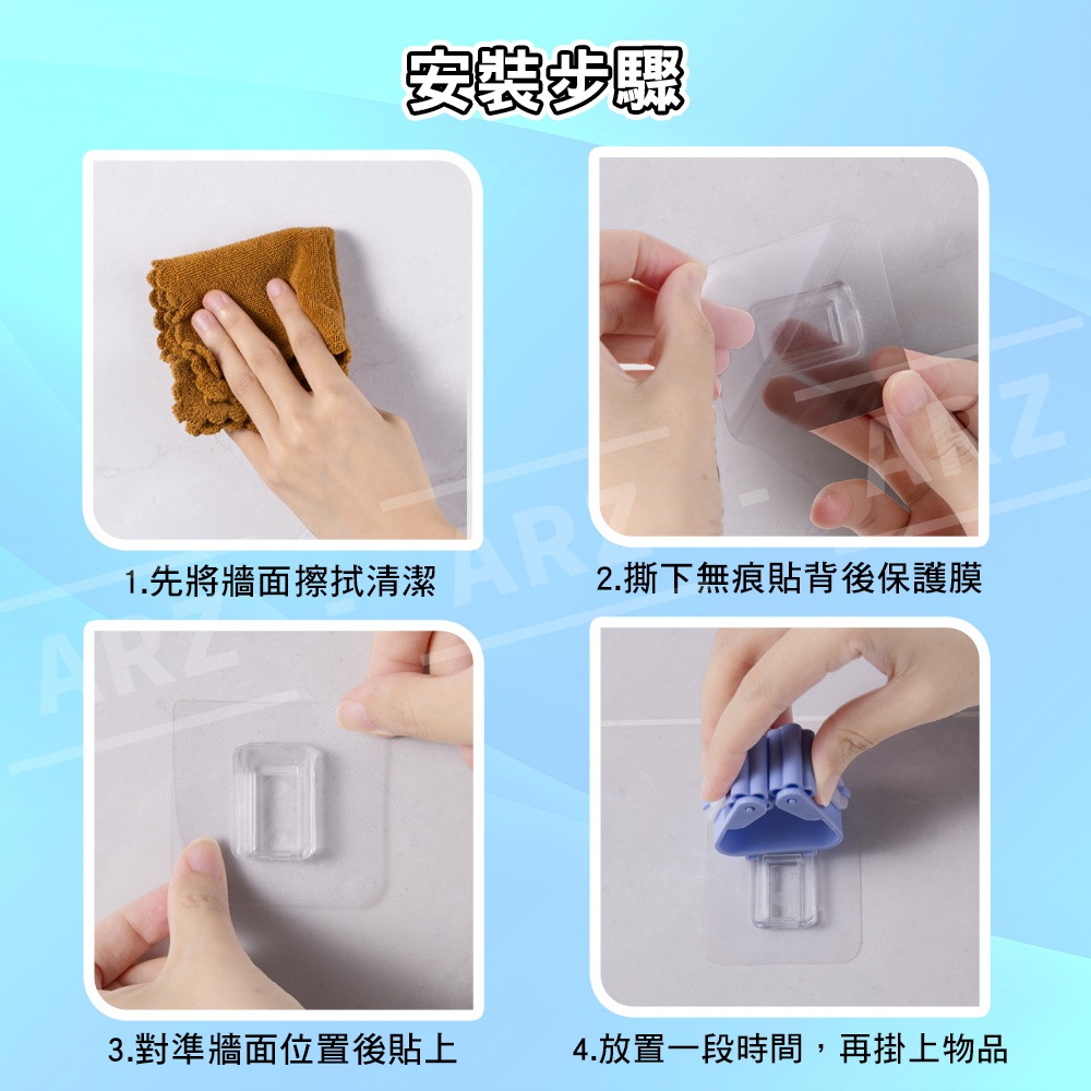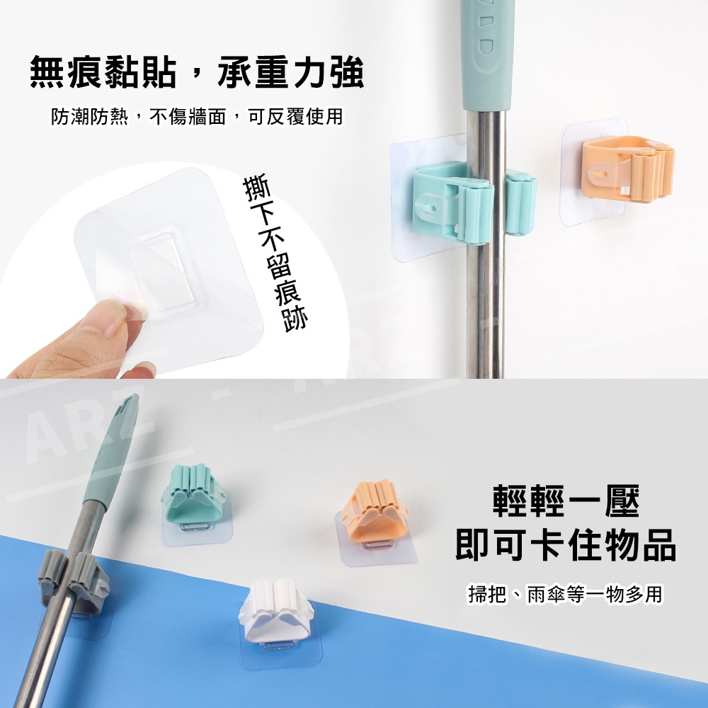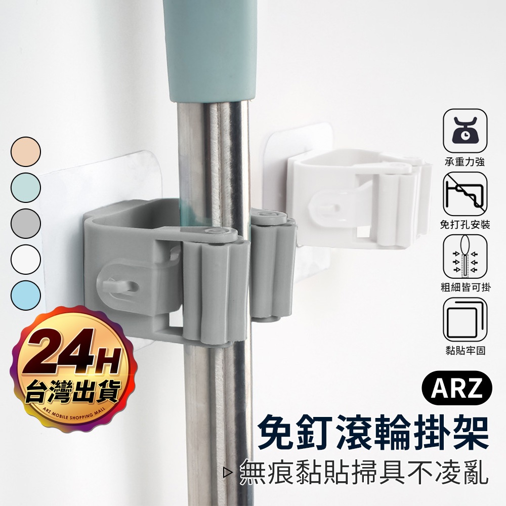 免釘滾輪掛架【ARZ】【D091】耐重 黏貼牢固 掃具收納 掃具掛架 掛架 拖把掛架 拖把架 掃把架 收納掛架 拖把夾白色|灰色|粉色|綠色|藍色HooksARZ行動商城