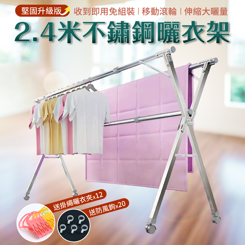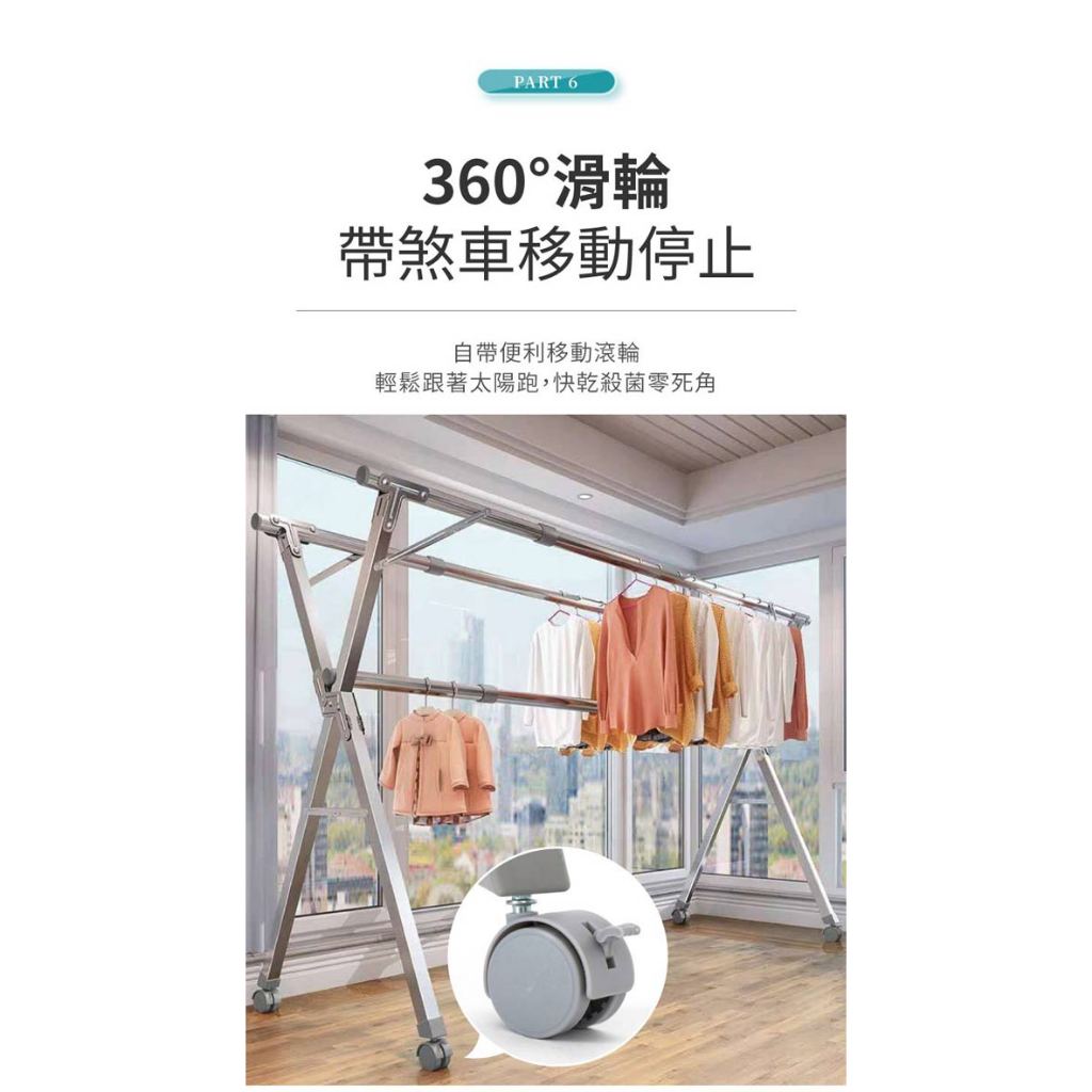 【IDEA】2.4米不銹鋼移動式帶輪三桿X型晾曬衣架X型滾輪款Clotheslines & Drying Racks【IDEA】視覺概念