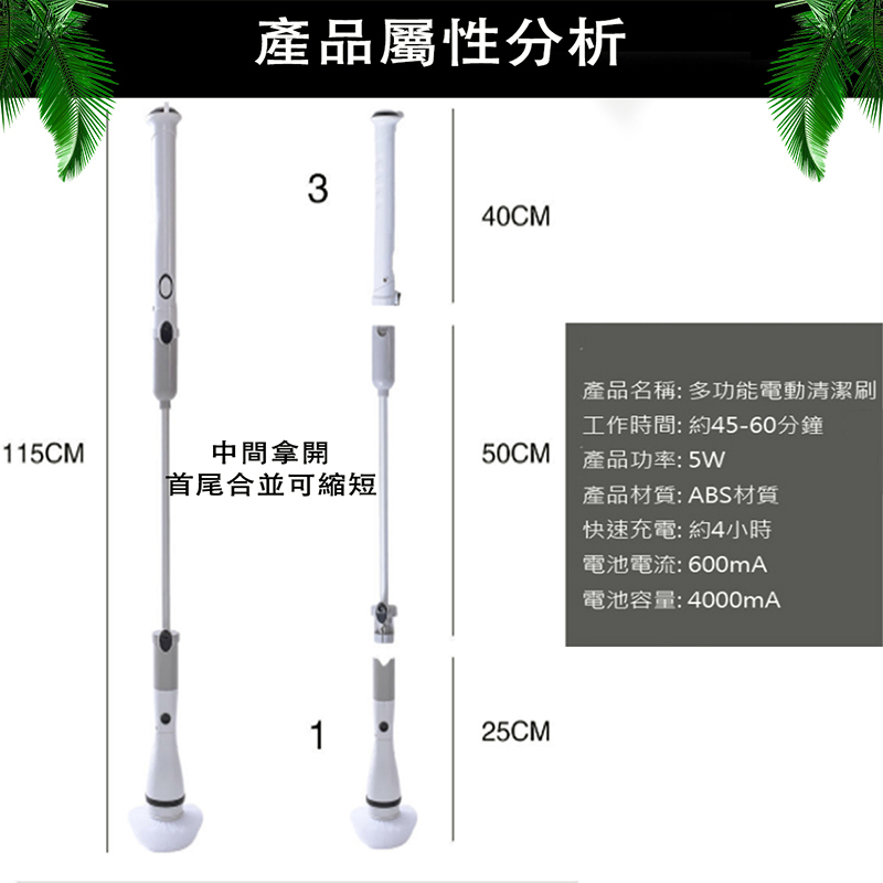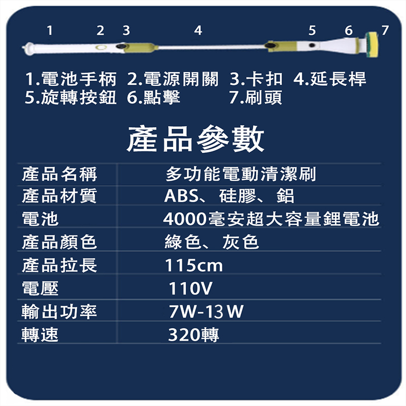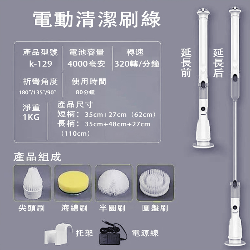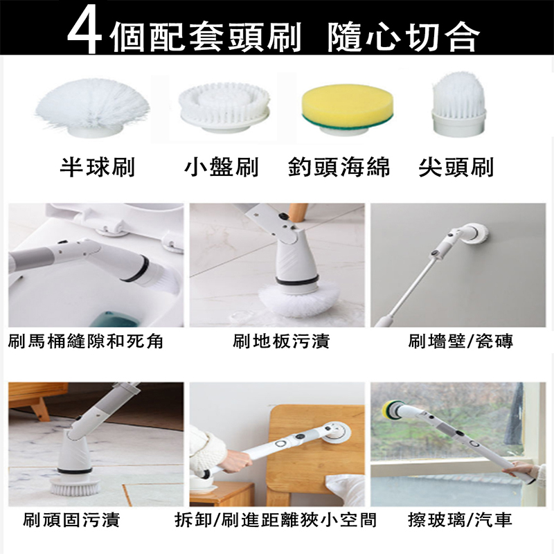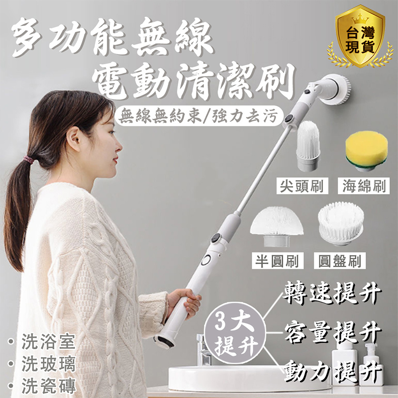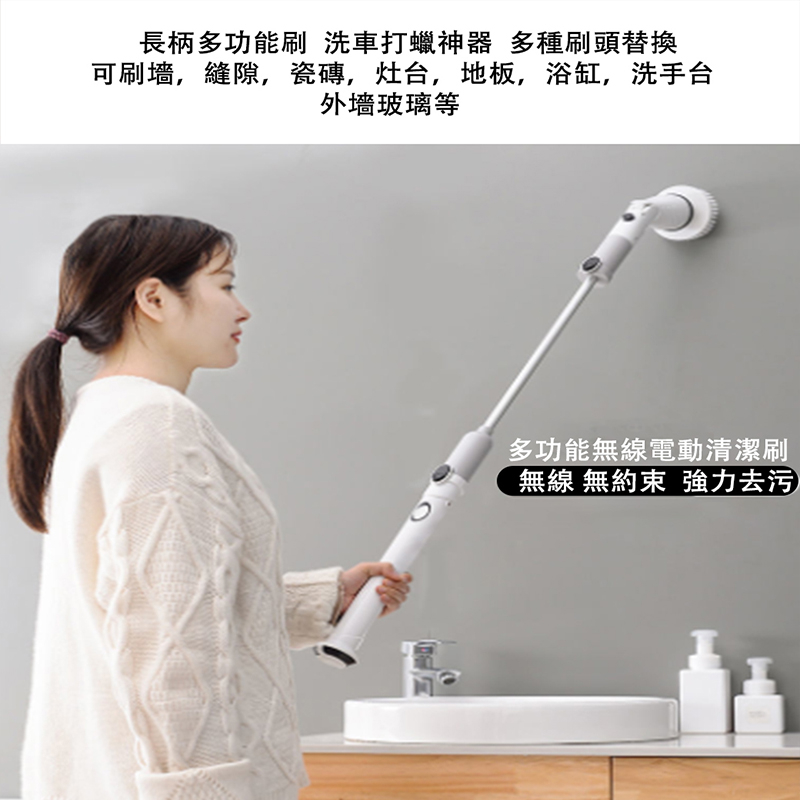 【LADUTA 】 電動清潔刷 無線可伸縮 廁所 廚房刷地 衛生間地板 地磚刷子 地刷長把 牆面清洗 電動清潔刷伸縮款灰色Cleaning Brushes【LADUTA 拉布塔】官方旗艦店