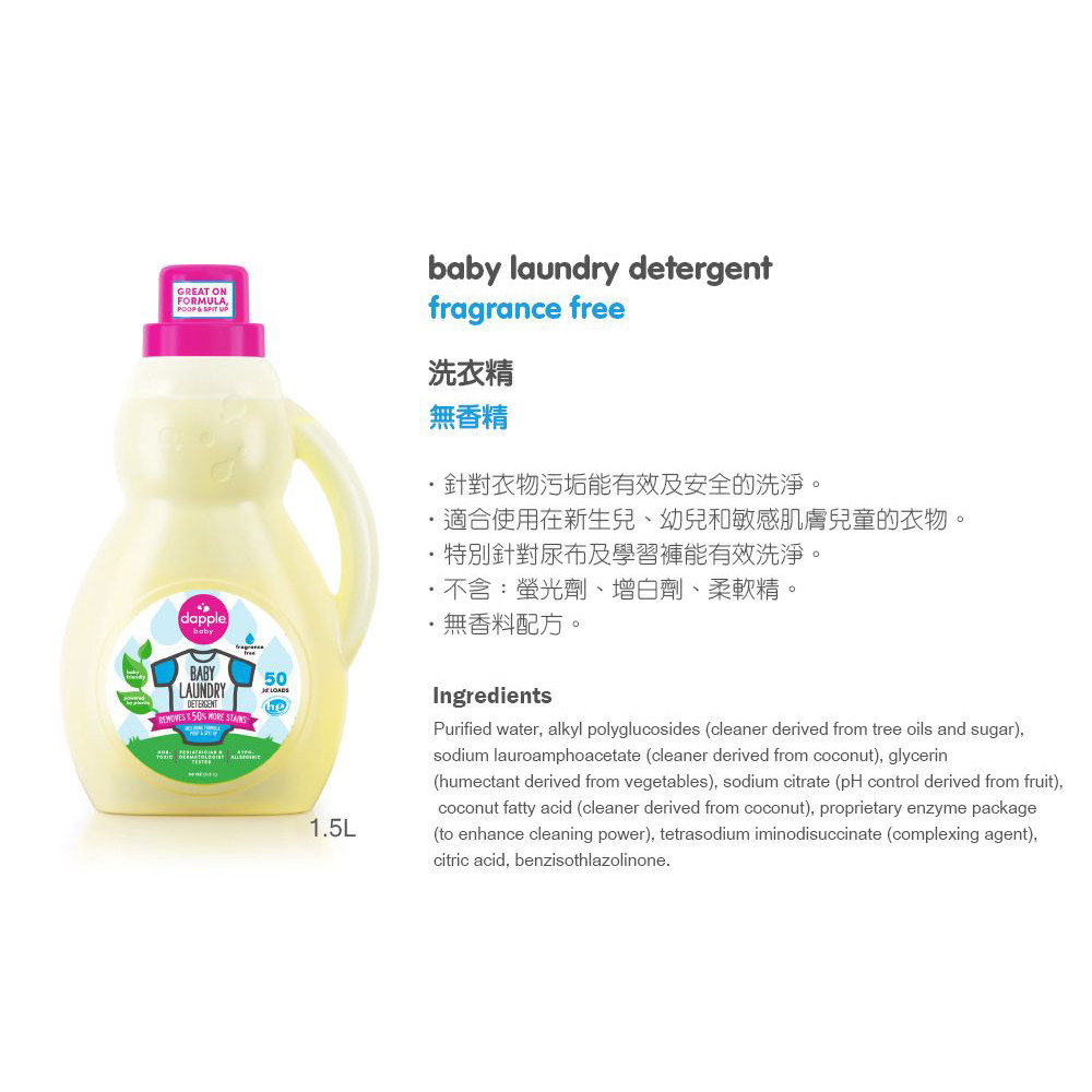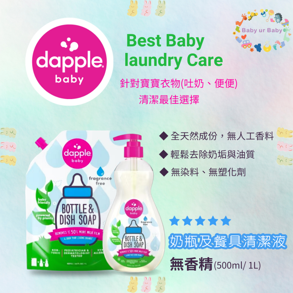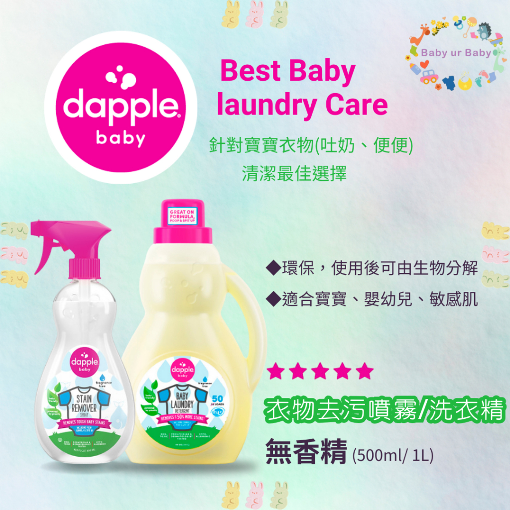 ❏ 美國 Dapple ❏ 新品上市 衣物去污噴霧 (無香精)|衣物清潔劑 (無香精/薰衣草)|洗衣精|奶瓶餐具清潔液無香精-清潔液補充包1L|無香精-奶瓶餐具清潔液500ml|無香精-衣服去污噴霧500mlCleaning AgentsBaby ur Baby