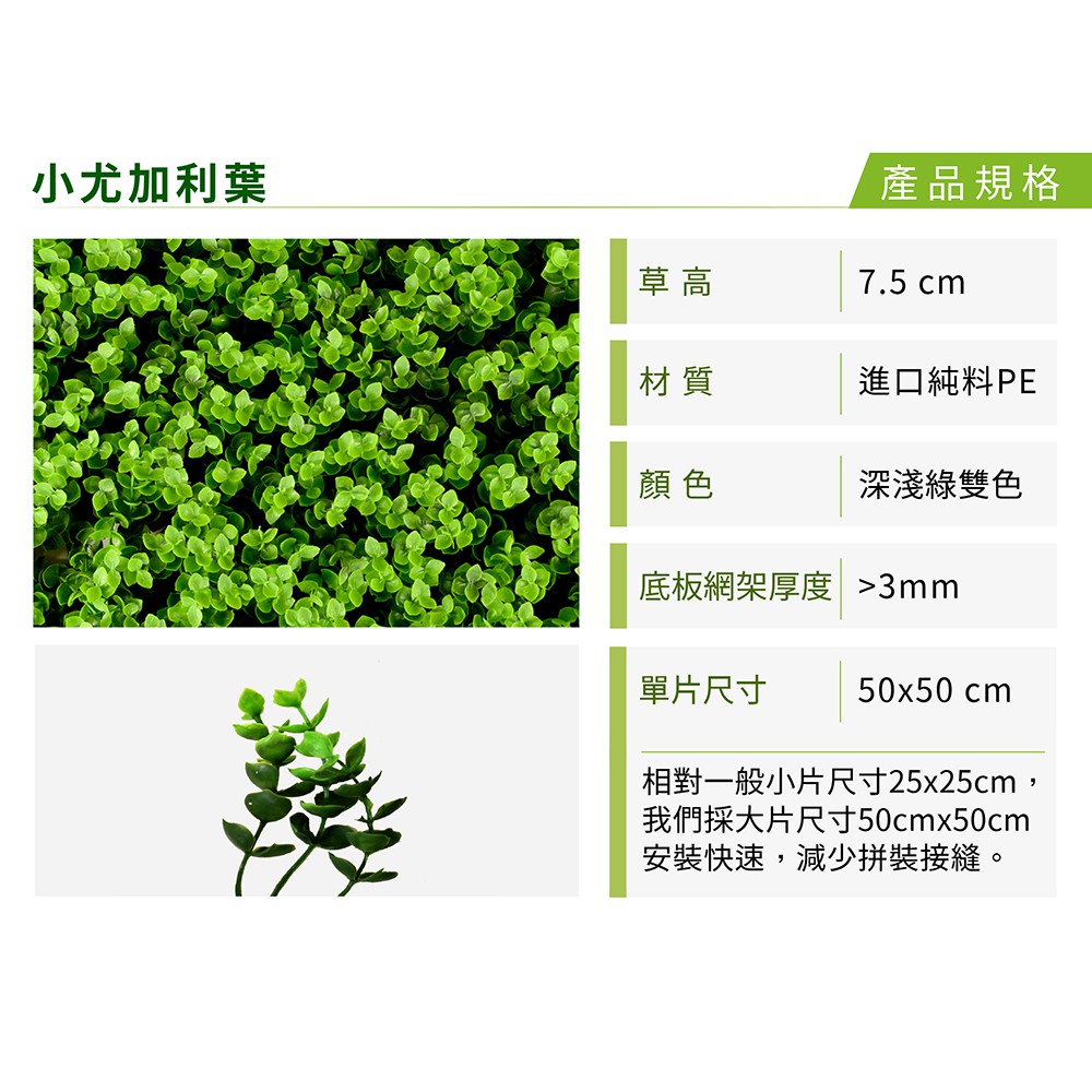【草皮達人】小尤加利葉-大片裝 仿真植物牆(300元/片,整箱10片特價2800元 大片尺寸50cmx50cm)【草皮達人】小尤加利葉-大片裝 仿真植物牆(300元/片,整箱10片特價2800元 大片尺寸50cmx50cm)Plants【草皮達人】專業人工草皮批發與零售 MASTURF 人工草皮