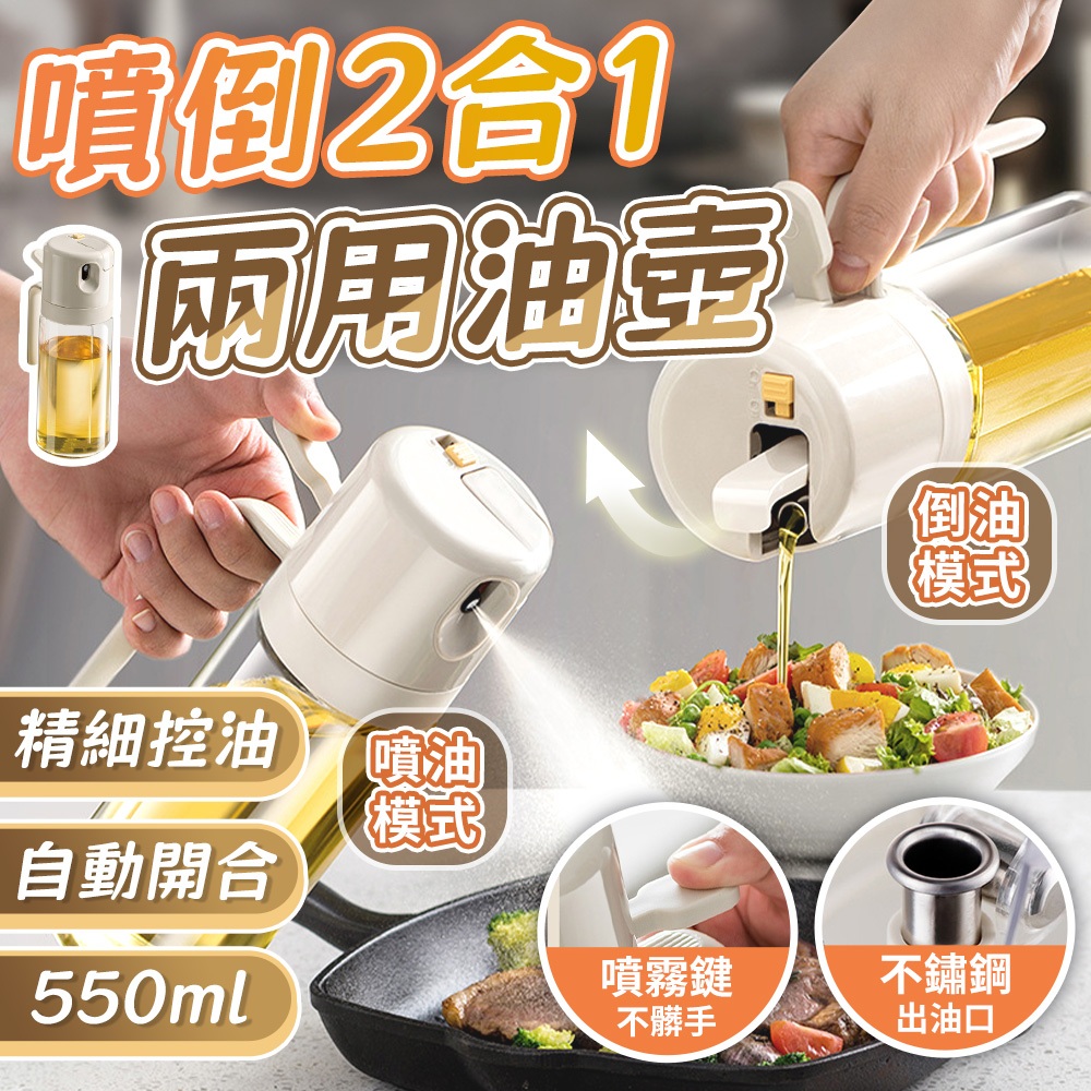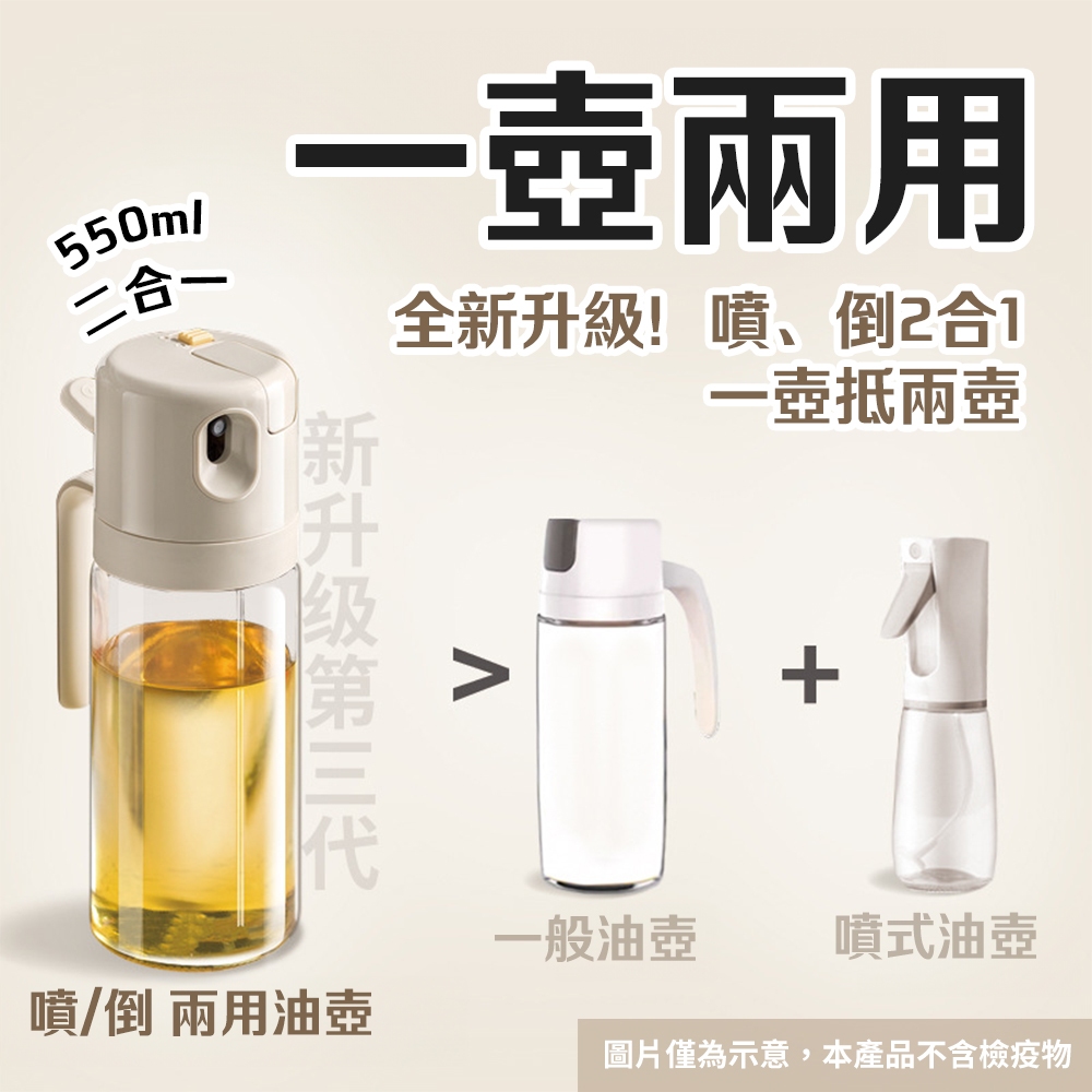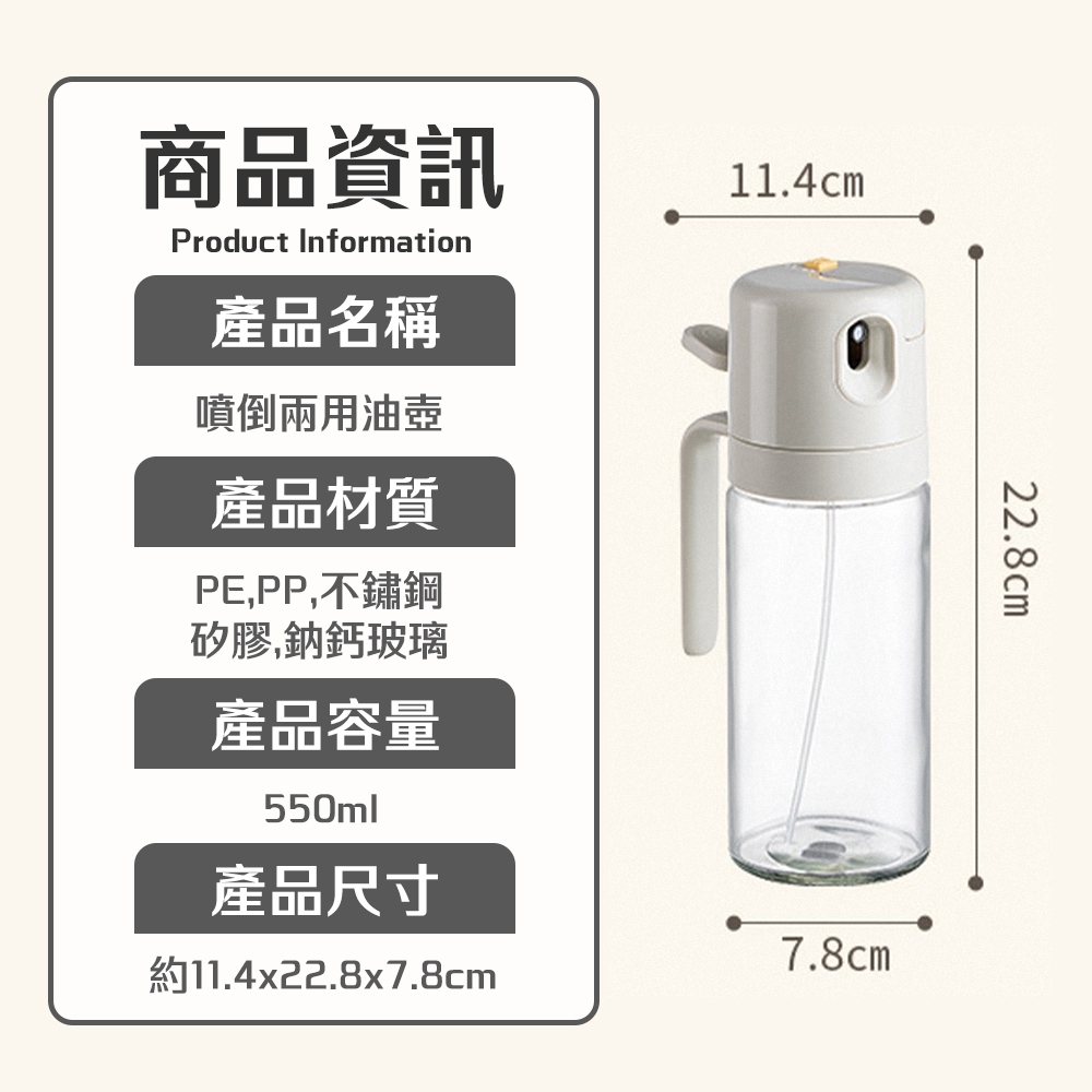 【大容量550ml 噴倒兩用】噴油瓶 玻璃油瓶 噴油壺 氣炸鍋噴油瓶 醬油瓶 調味罐【DA00200】米色Spatulas & Cooking Tweezers【隔日配】JHS專營日用品、汽車百貨、3C周邊