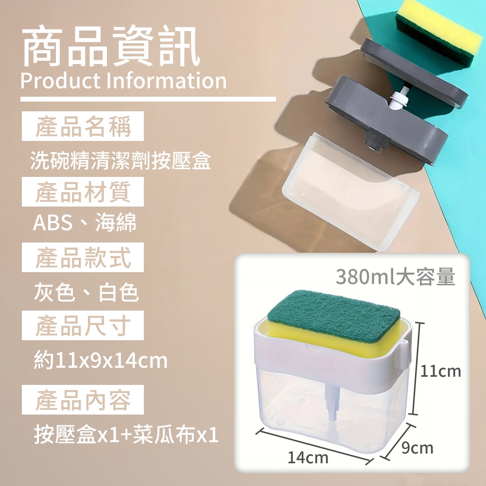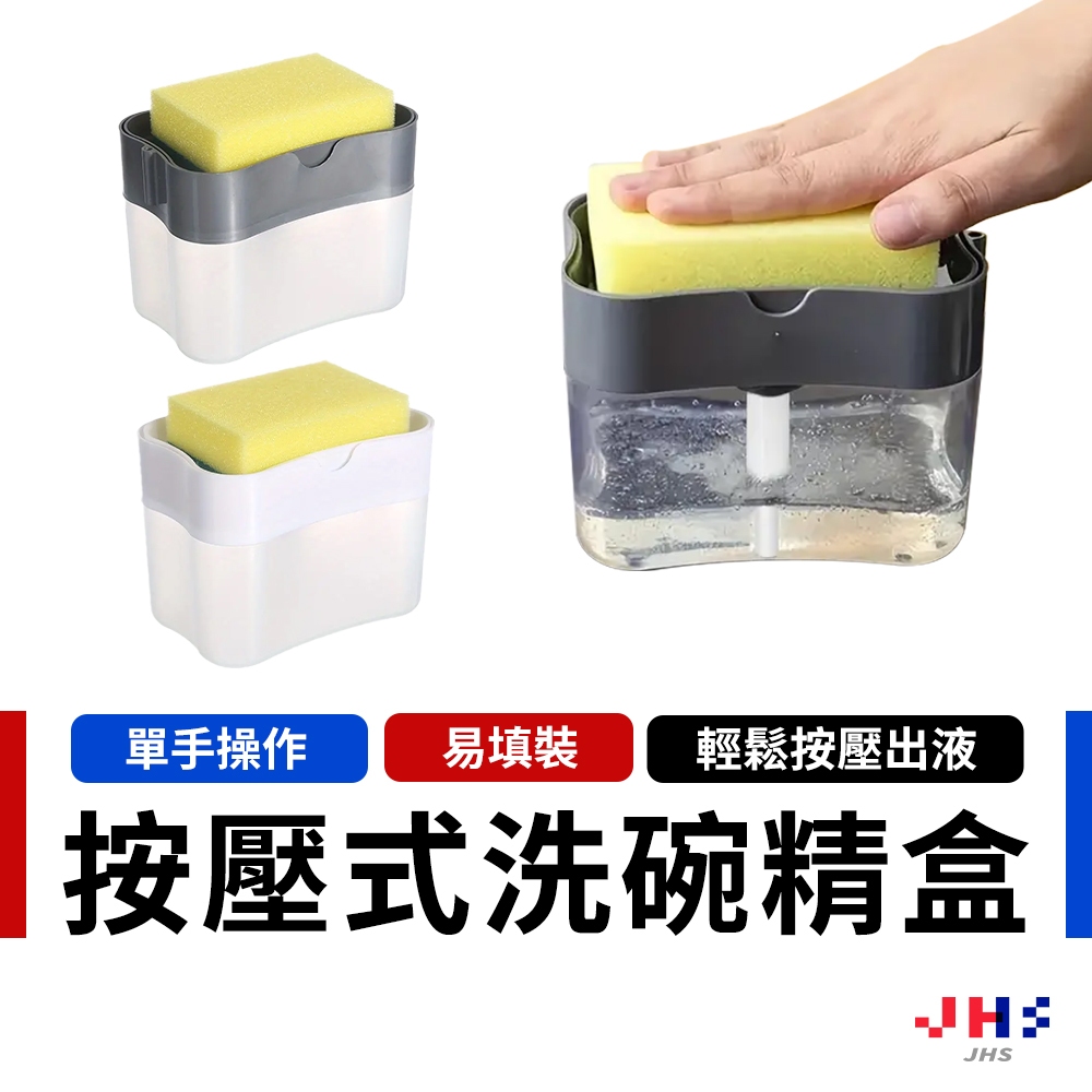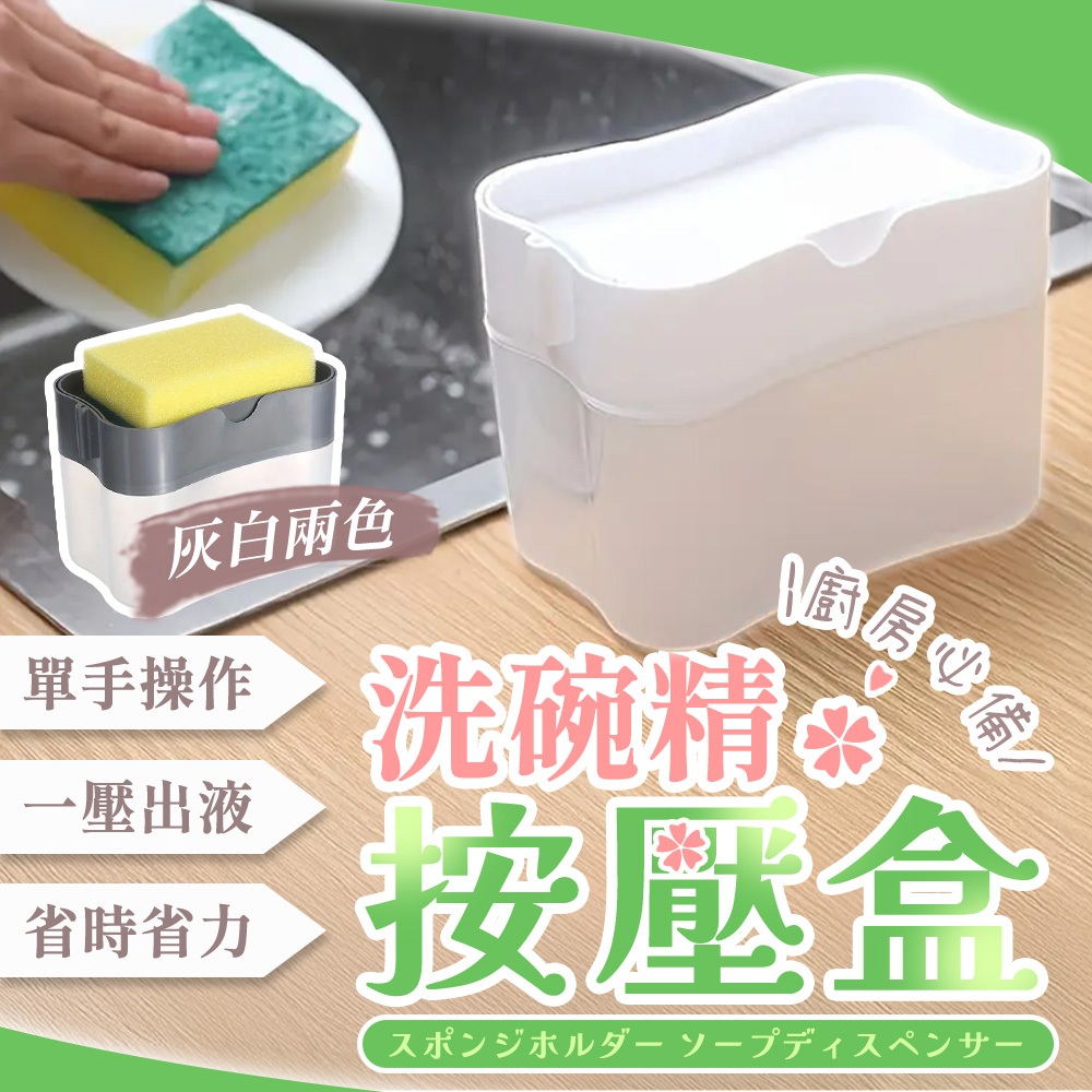 【附菜瓜布 單手按壓方便快速】洗碗精按壓盒 洗碗精盒 菜瓜布盒 洗碗精架 按壓洗碗精 皂液盒【DA00188】灰色|白色Cleaning Agents【隔日配】JHS專營日用品、汽車百貨、3C周邊