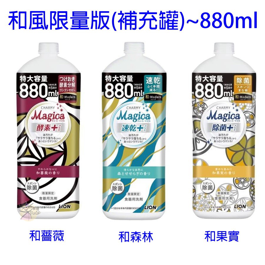 LION獅王 CHARMY Magica 洗碗精-本體/補充罐 【樂購RAGO】 速乾+/酵素+/除菌+ 日本製本體:薄荷藍|本體:草本藍(缺)|本體:柑橘薑(缺)|本體:白玫瑰(缺)|本體:和風限量版~和薔薇(缺)|本體:和風限量版~和森林(缺)|本體:和風限量版~和果實|補充罐:和風限量版~和薔薇(缺)|補充罐:和風限量版~和森林(缺)|補充罐:和風限量版~和果實(缺)|本體:檸檬薄荷|本體:白玫瑰|補充罐:檸檬薄荷(570ml)|補充罐:白玫瑰(570ml)Cleaning Agents【樂購RAGO】