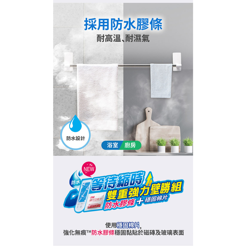 3M 無痕 304金屬防水收納-浴室免鑽 毛巾架3M 無痕 304金屬防水收納-浴室免鑽 毛巾架Hooks3M 授權官方旗艦館