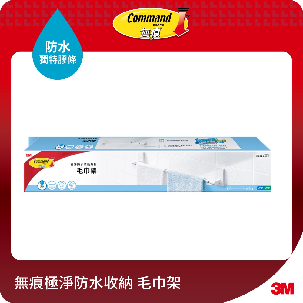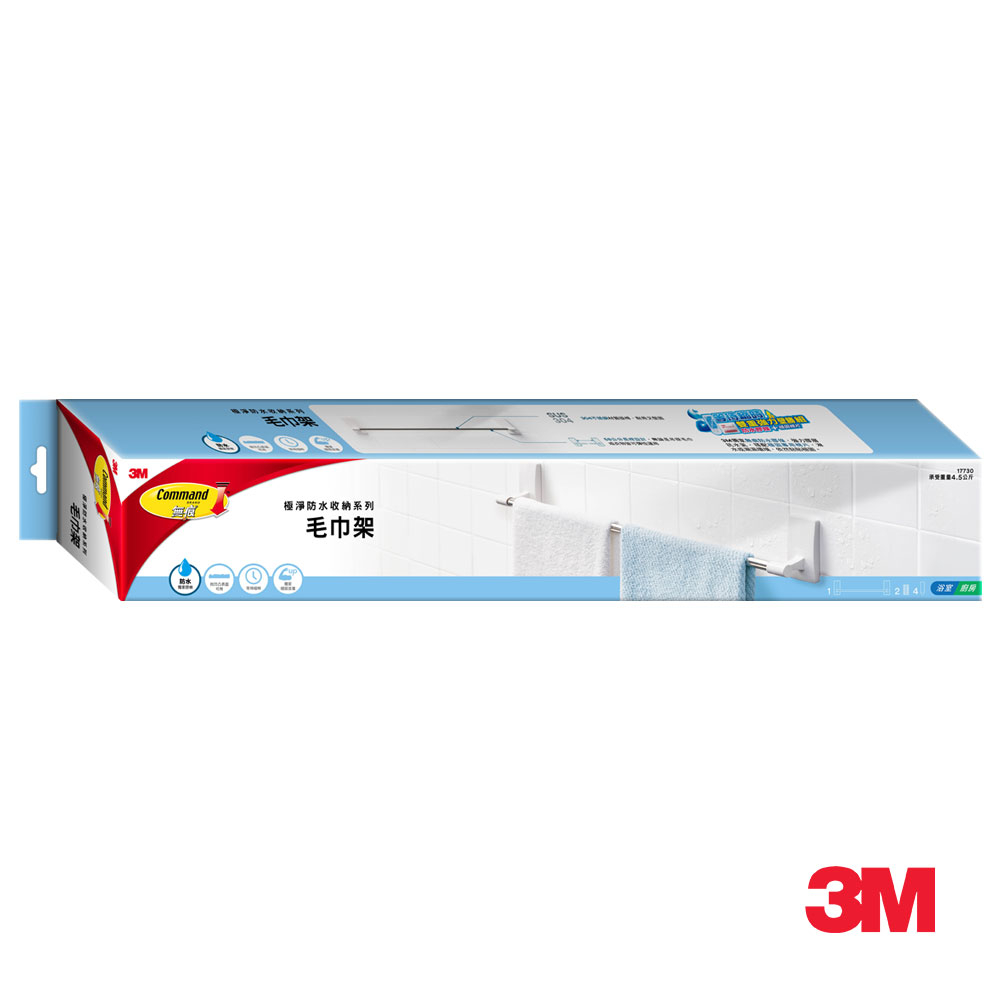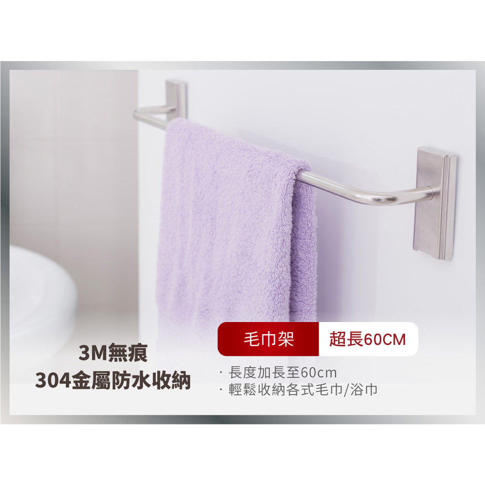 3M 無痕極淨防水收納系列-毛巾架17730-TC 免鑽釘/不殘膠/不傷牆/不易鏽1入Bathroom Racks & Cabinets3M 授權官方旗艦館