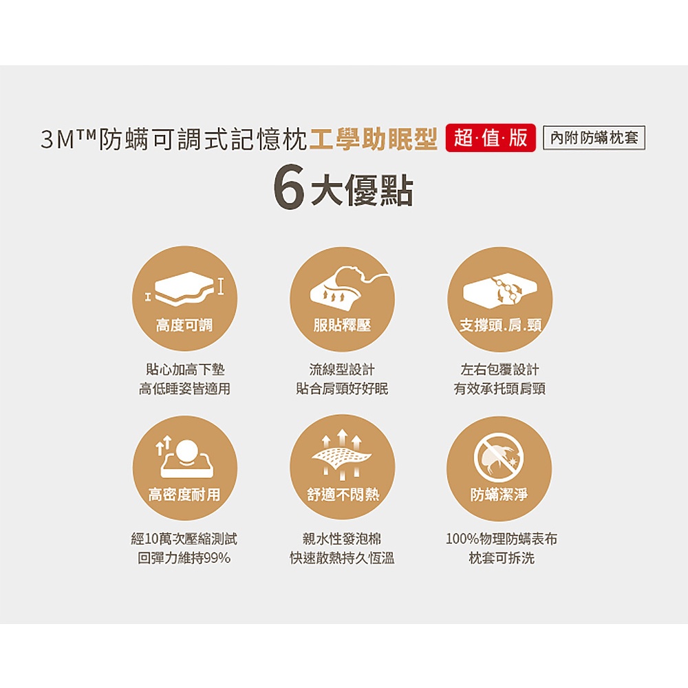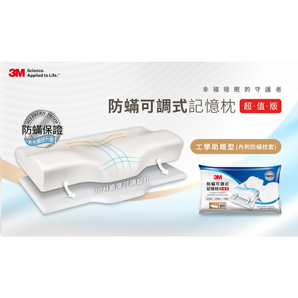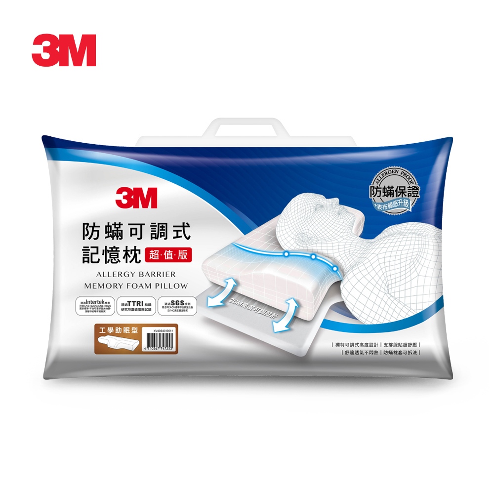 3M MZ800 防蹣可調式記憶枕-工學助眠型超值版1入Pillows3M 授權官方旗艦館