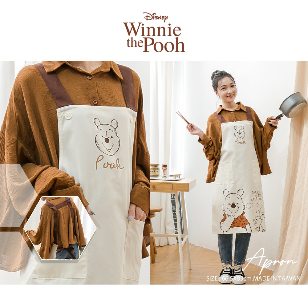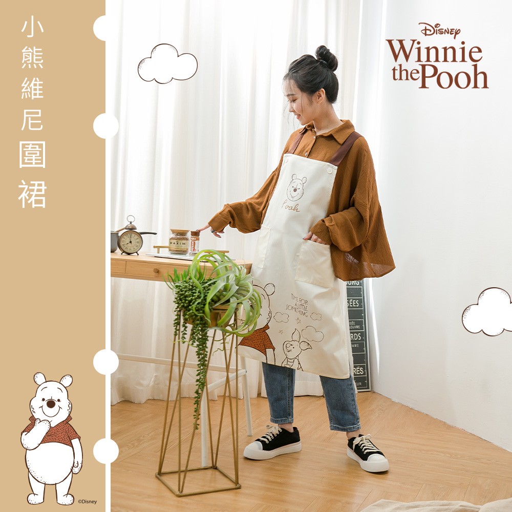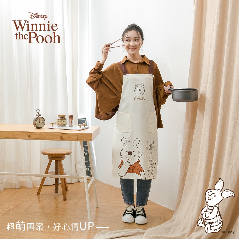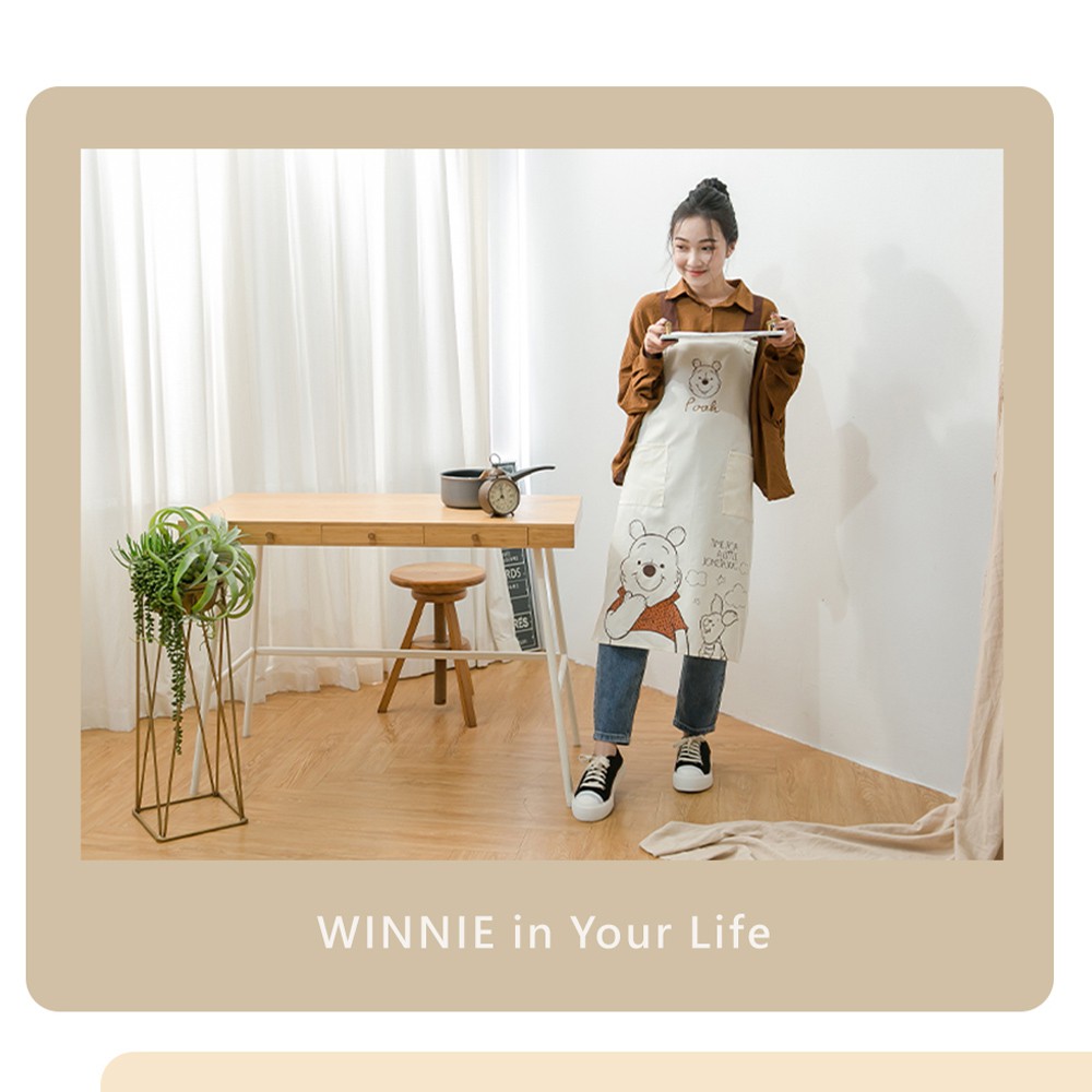 迪士尼 Disney 正版授權 小熊維尼日系圍裙/工作圍裙【5IP8】DN0257小熊維尼圍裙(米)Aprons & Kitchen Gloves5IP8居家生活館