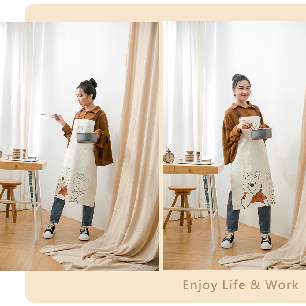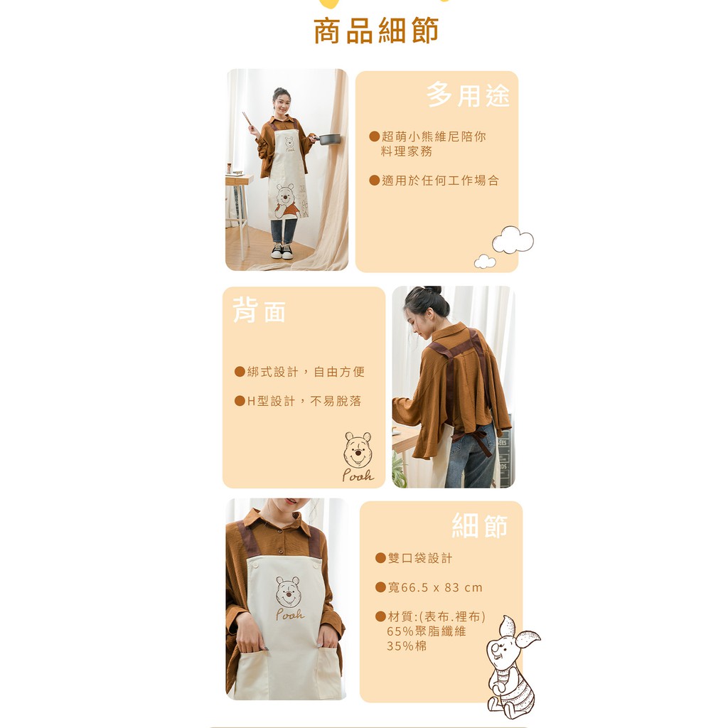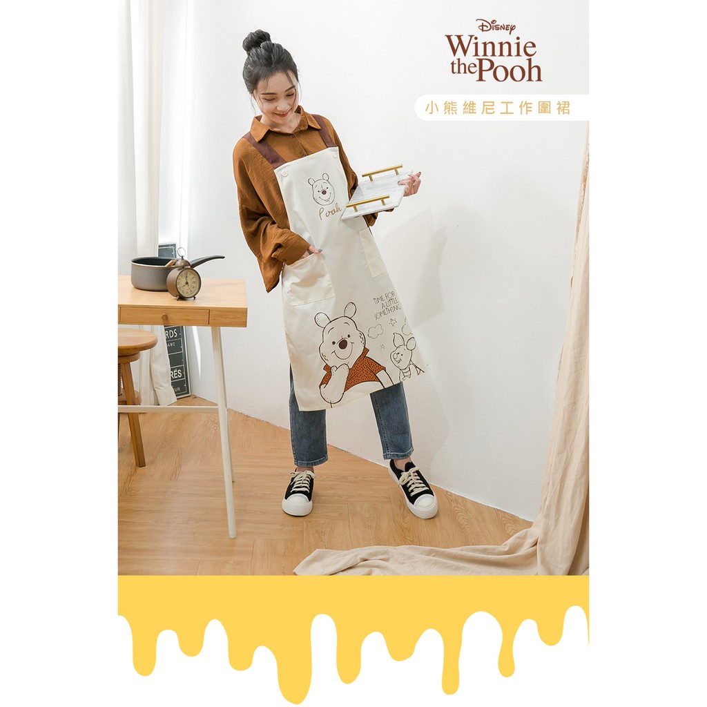 迪士尼 Disney 正版授權 小熊維尼日系圍裙/工作圍裙【5IP8】DN0257小熊維尼圍裙(米)Aprons & Kitchen Gloves5IP8居家生活館