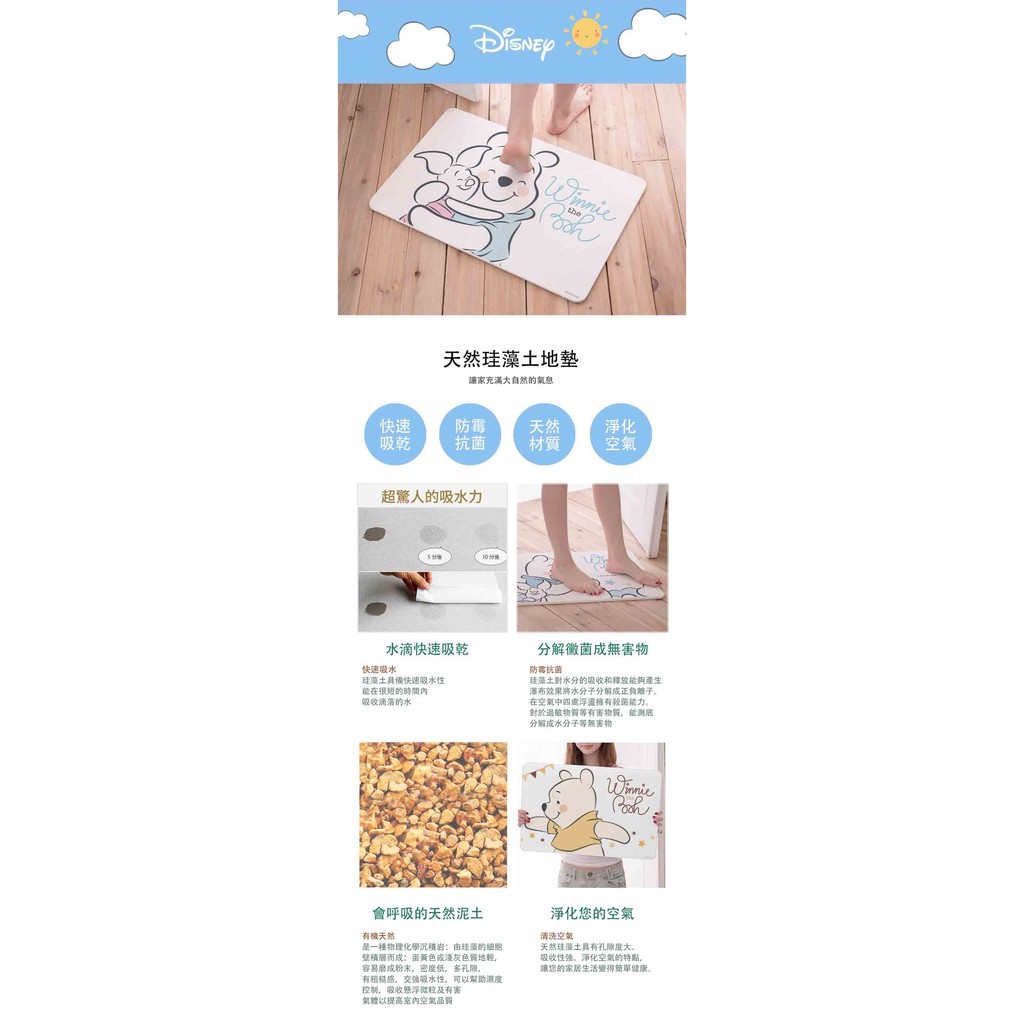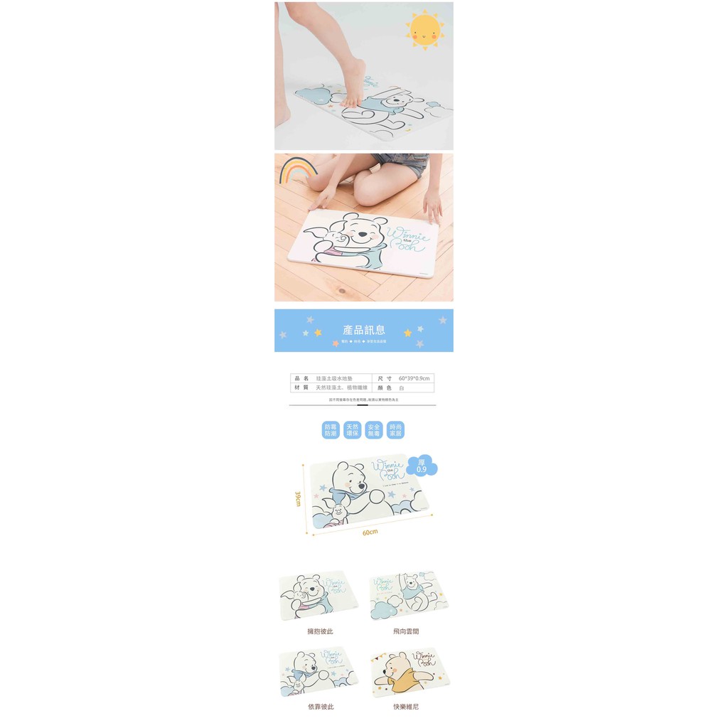 迪士尼 Disney 小熊維尼 療癒系列 硬式珪藻土地墊 60×39 硅藻土腳踏墊 防潮 矽藻土【5ip8】DN0197擁抱彼此|飛向雲間|依靠彼此|快樂維尼Carpets & Rugs5IP8居家生活館