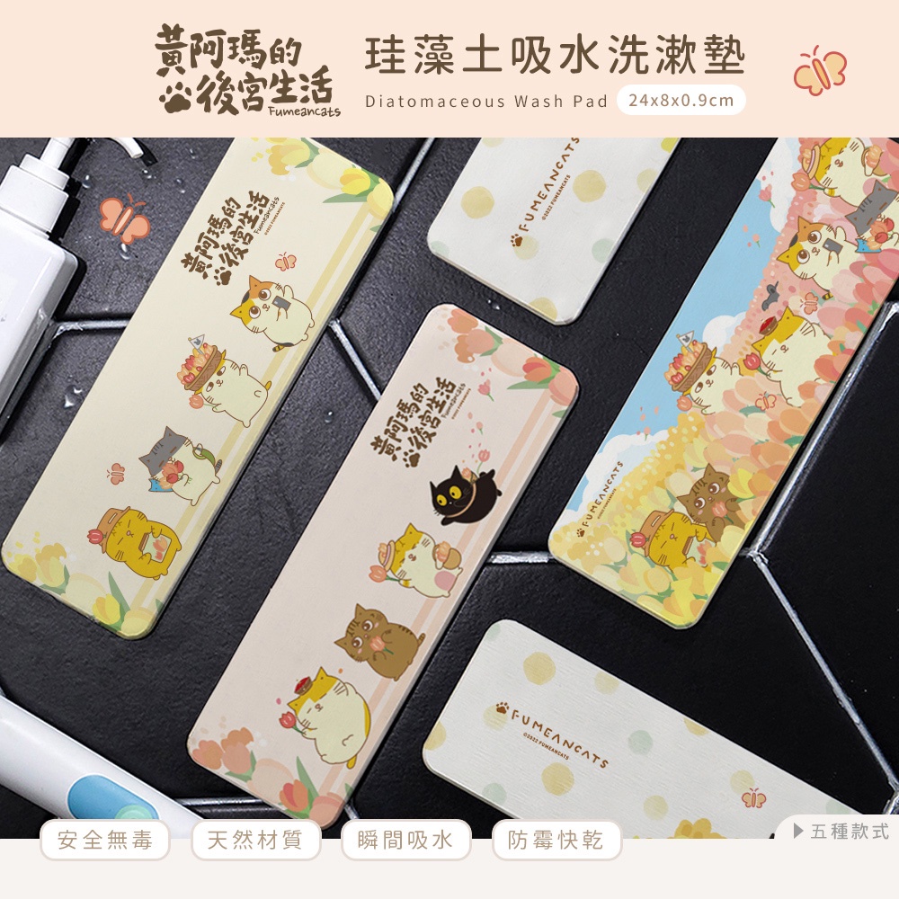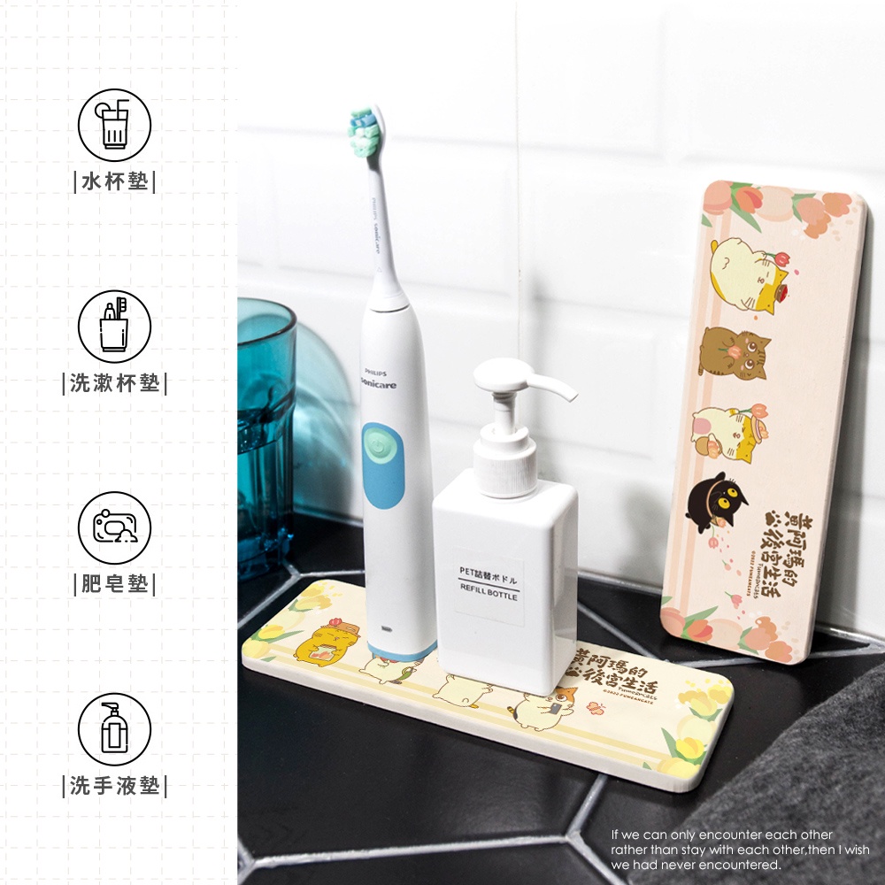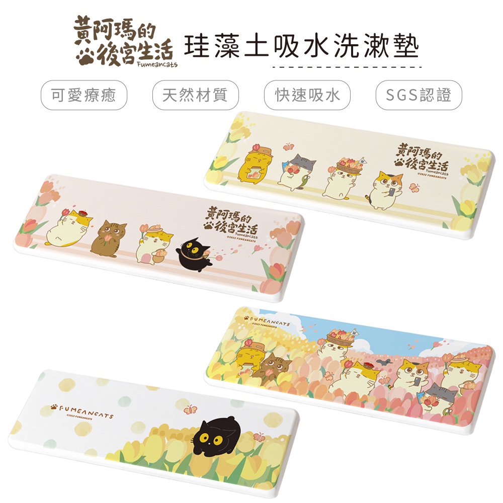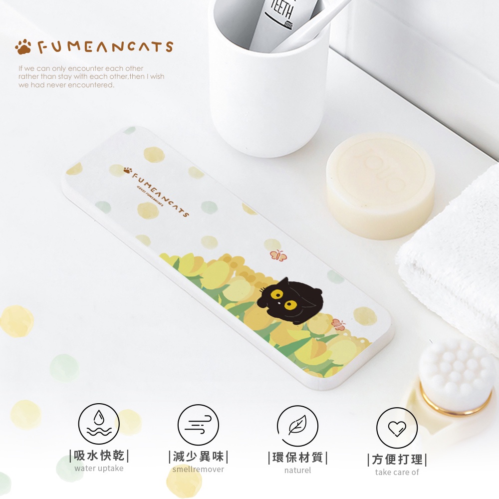 黃阿瑪的後宮生活 鬱金香系列 硬式珪藻土洗漱墊24×8 貓咪 防潮 杯墊 瀝水 硅藻土牙刷架【5ip8】MA0040花叢SOCLES|黃花|粉花|灰胖躲貓貓Placemats & Coasters5IP8居家生活館