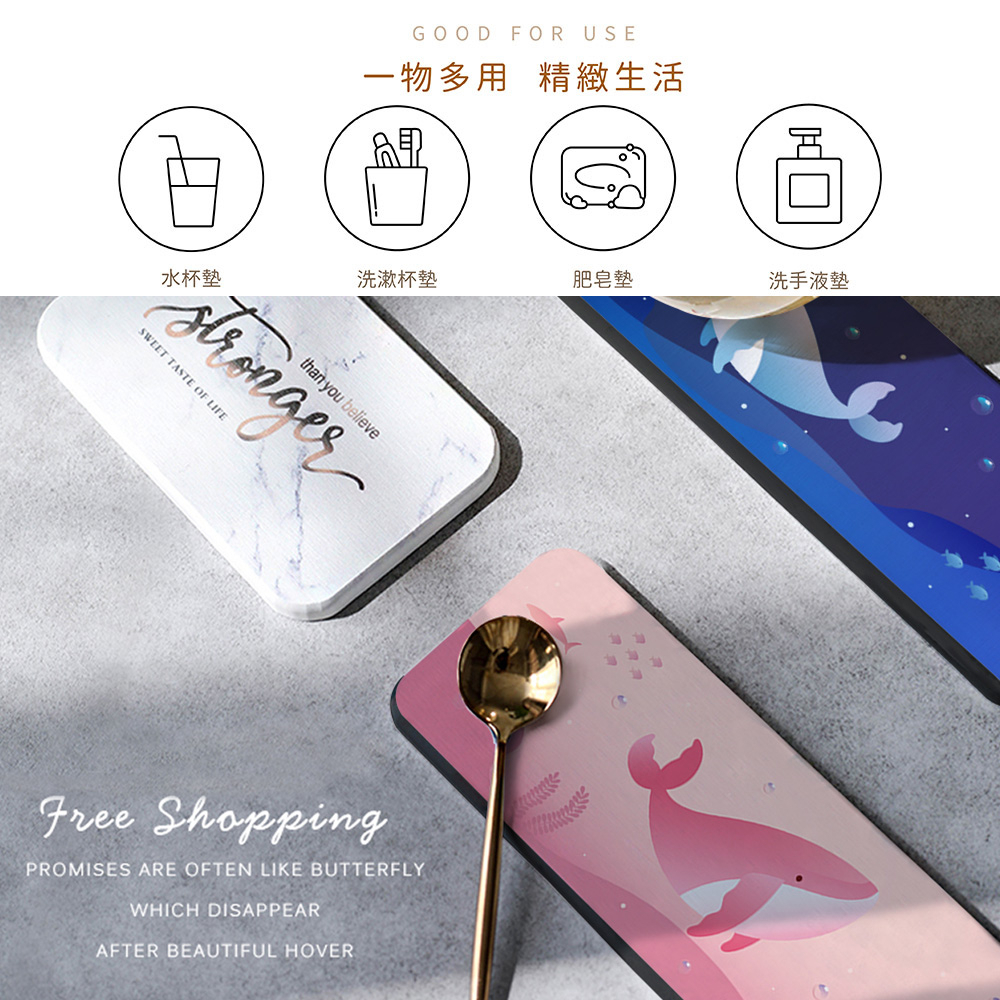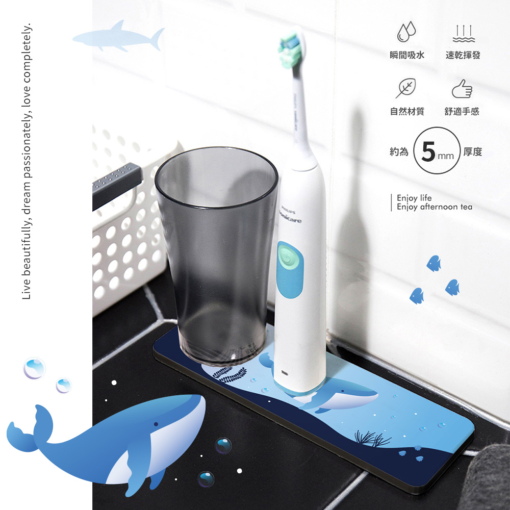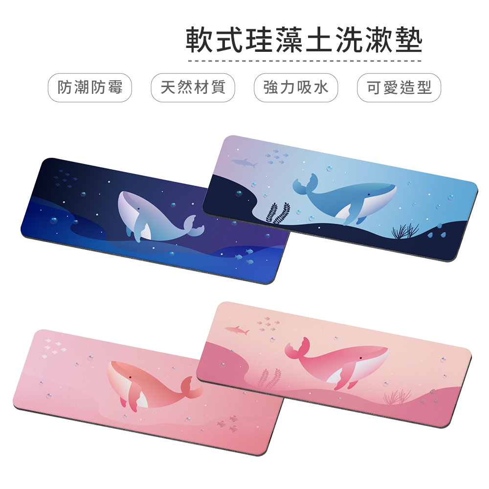 自創海洋鯨魚系列 軟式珪藻土洗漱墊 防潮 杯墊 瀝水 硅藻土 吸水墊 浴室收納 牙刷架【5ip8】深海鯨|鯨|深海粉鯨|粉鯨Placemats & Coasters5IP8居家生活館