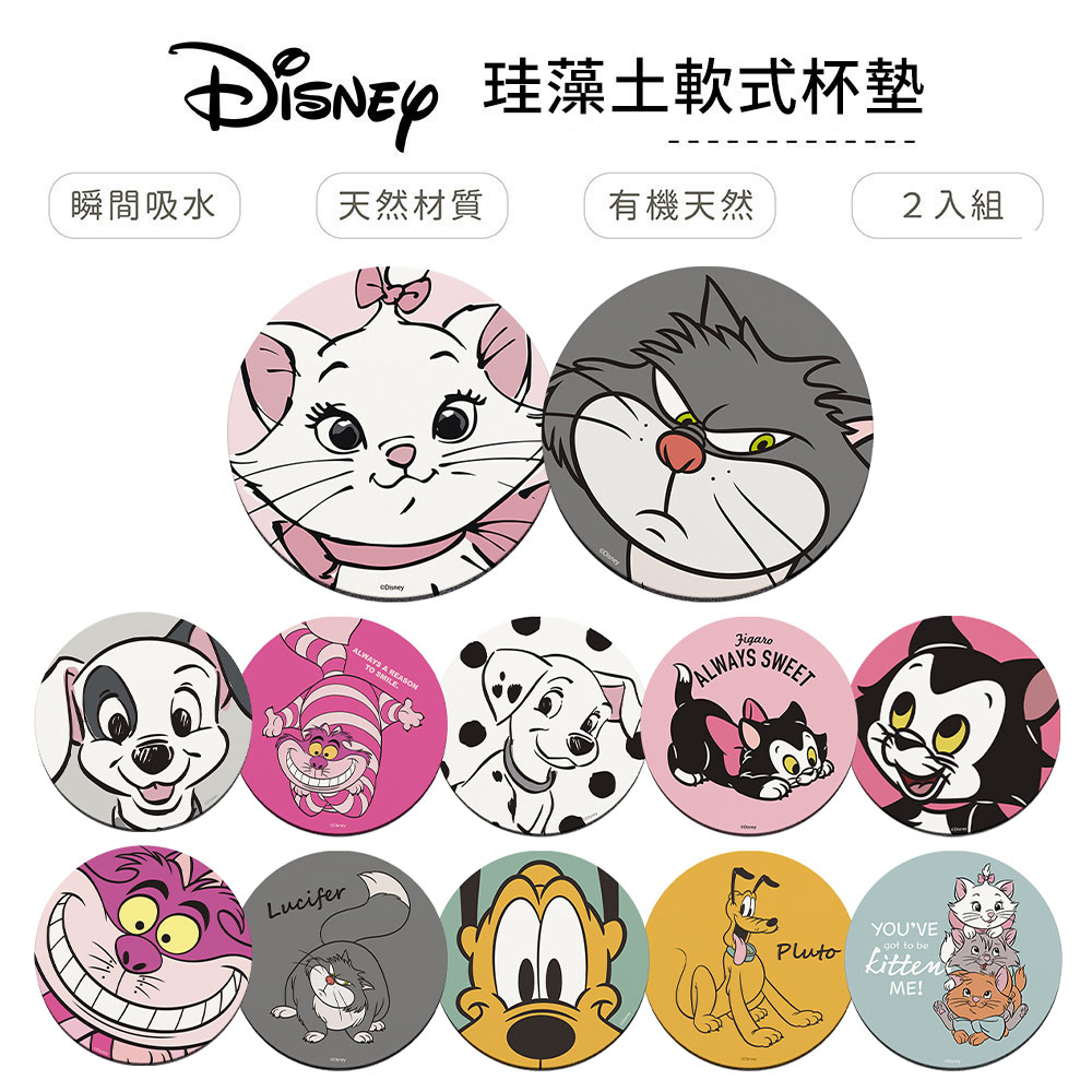 迪士尼 Disney 貓狗系列 軟式珪藻土杯墊 2入組 瑪麗貓 魯斯佛 布魯托 101忠狗 柴郡貓 費加洛【5ip8】大臉布魯托|大臉費加洛|大臉魯斯佛|大臉柴郡貓|大臉忠狗|大臉瑪麗貓Placemats & Coasters5IP8居家生活館