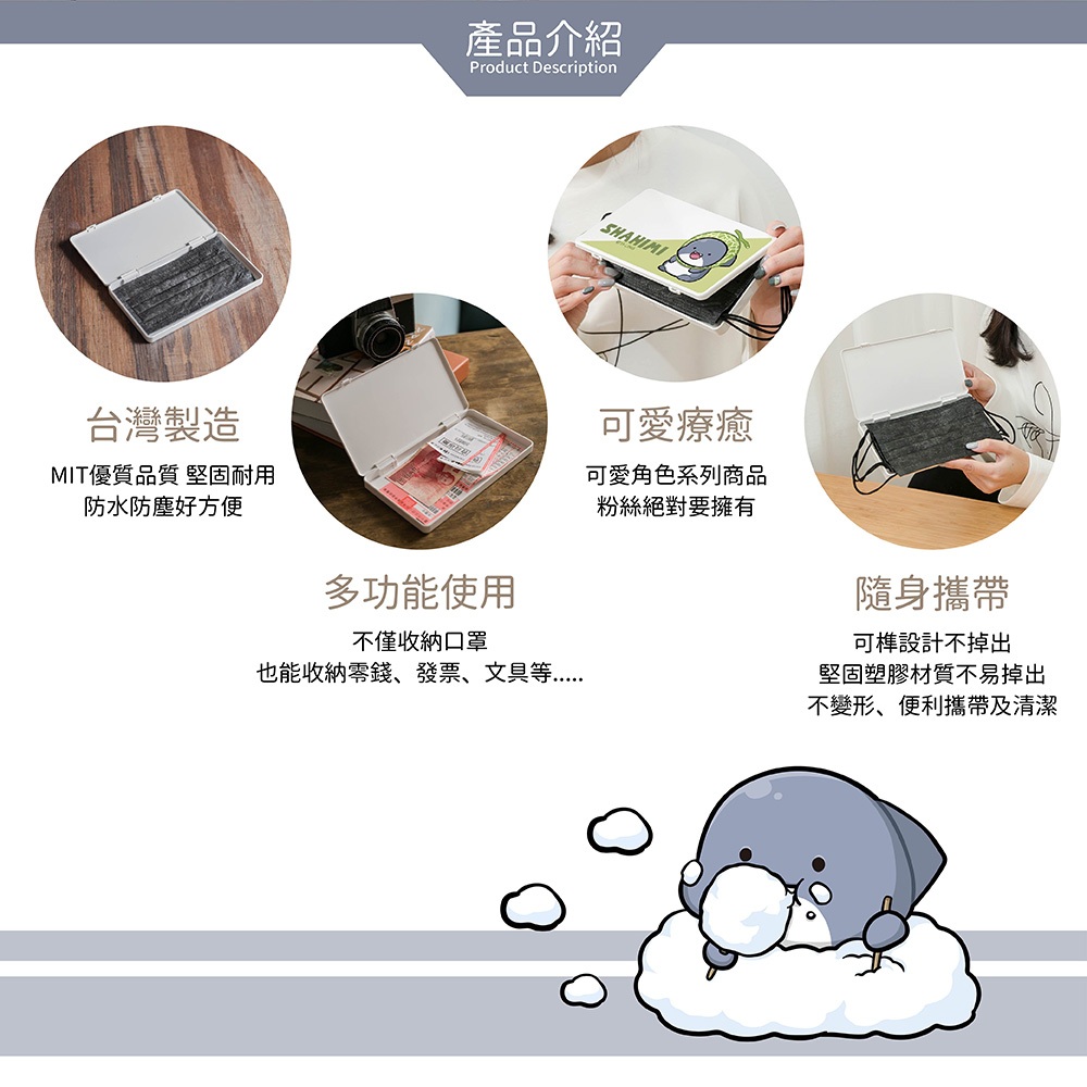 胖鯊魚鯊西米 隨身口罩收納盒 正版授權 台灣製造 口罩盒 置物盒 零錢盒【5ip8】HM0009雲朵|愛心|哈密瓜Jewelry Organizers5IP8居家生活館