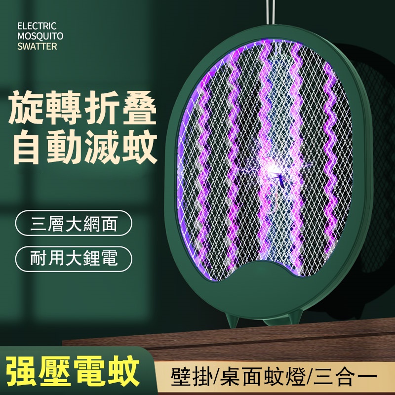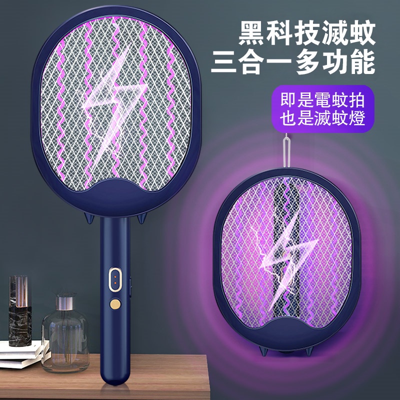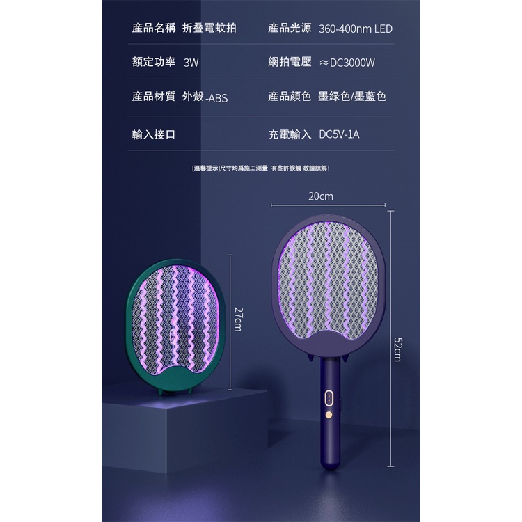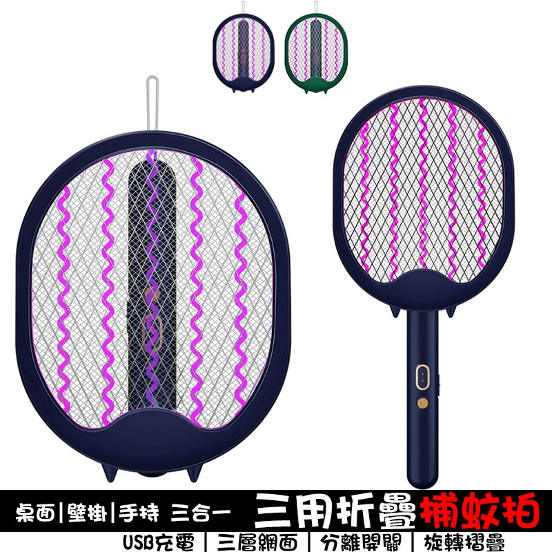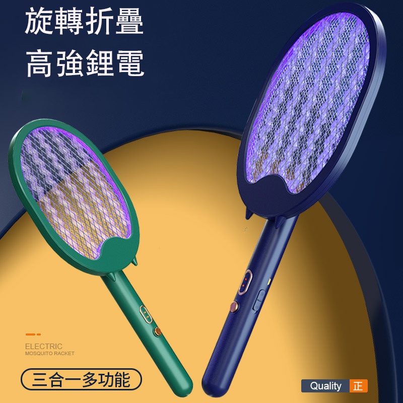摺疊電蚊拍 usb充電 三合一 捕蚊拍 捕蚊神器 多功能捕蚊拍 電蚊拍 補蚊燈 充電捕蚊器 LED誘蚊燈 充電式捕蚊拍墨藍色|墨綠色Pest & Weed ControlADHIL旗艦店