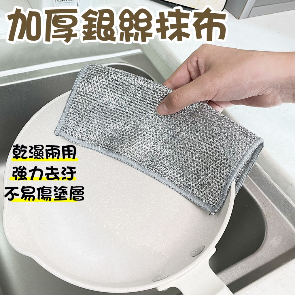 銀絲抹布 鋼絲抹布 銀絲洗碗布 鋼絲洗碗抹布 廚房抺布 銀絲抹布 乾溼兩用抹布 乾濕兩用銀絲布 鋼絲球抹布 洗碗布 抹布[一般單層]20*20cm|[加厚單層銀絲布]20*20cmSponges & Scouring PadsADHIL旗艦店