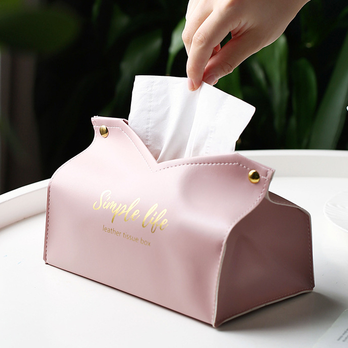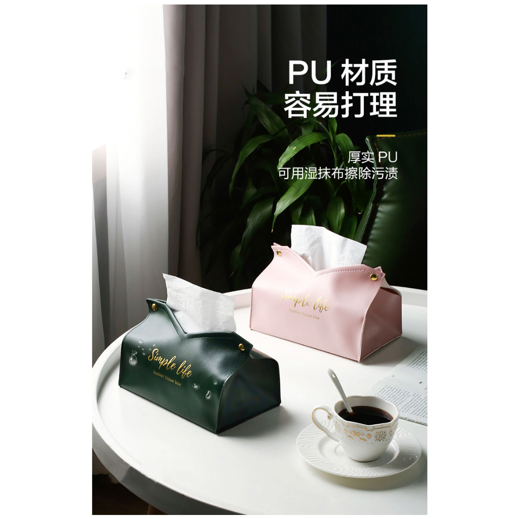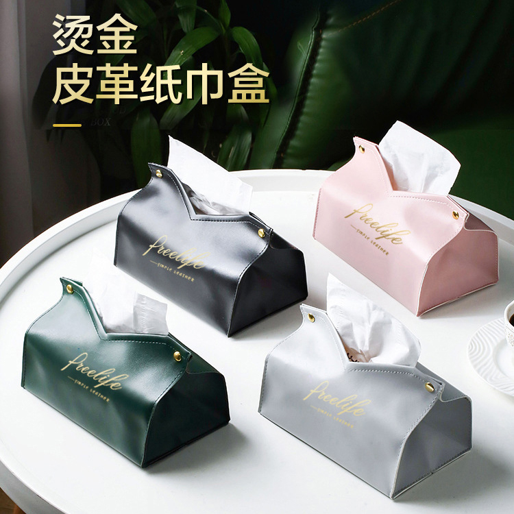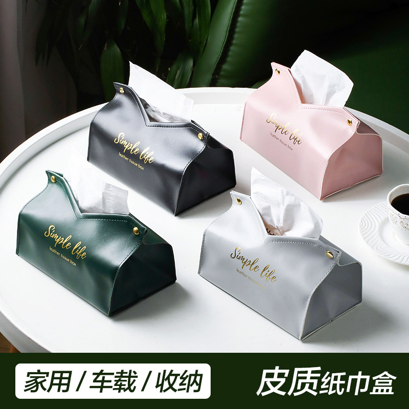 燙金皮革紙巾盒 面紙盒 紙盒 收納盒 適用居家/車載 衛生紙收納盒 抽取面紙收納盒 皮質面紙盒 皮革收納盒 V口面紙盒粉色|綠色|灰色|黑色Tissue HoldersADHIL旗艦店