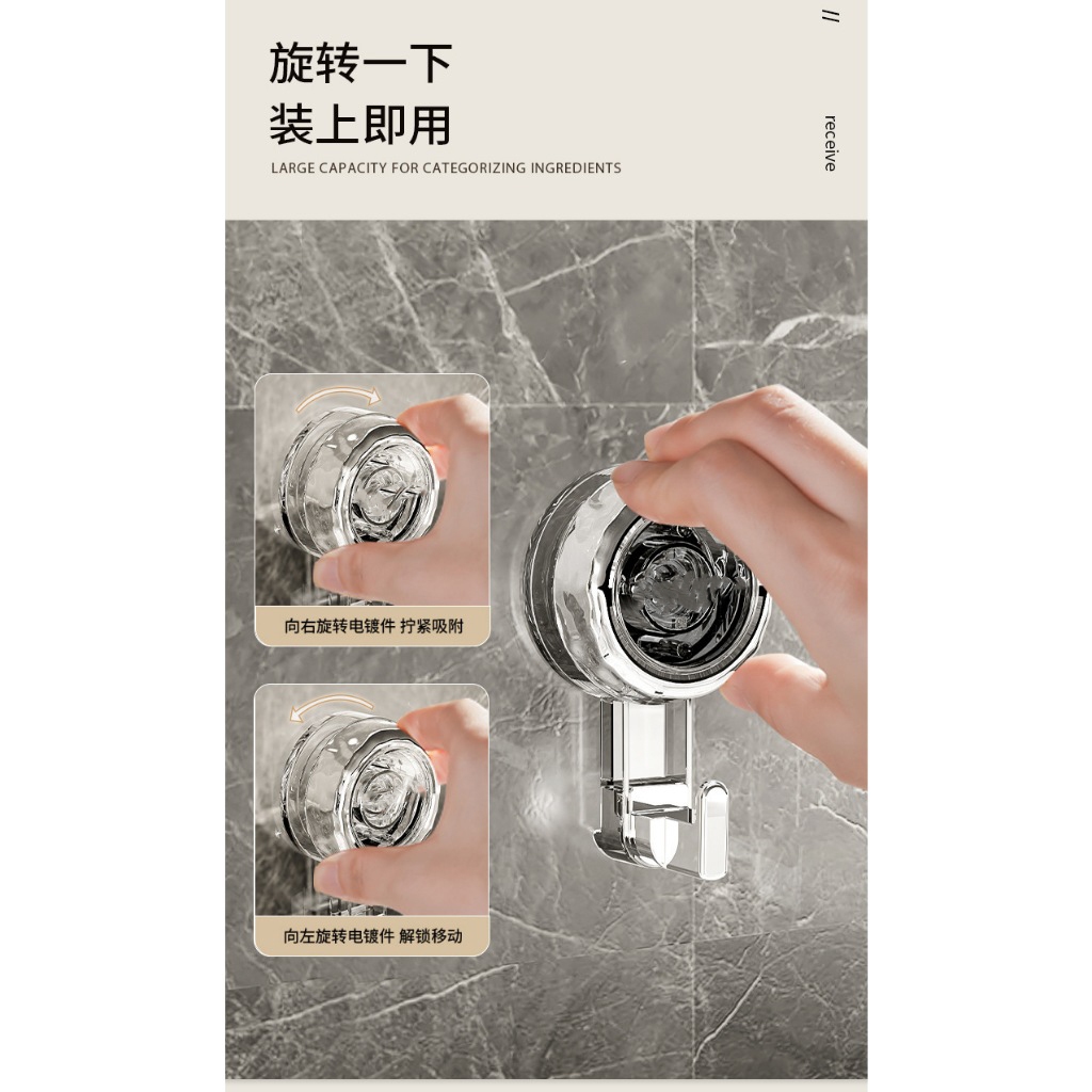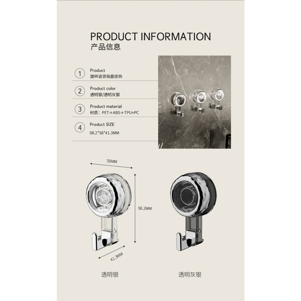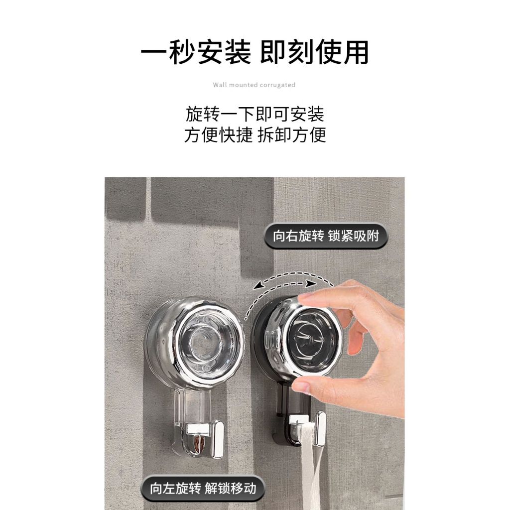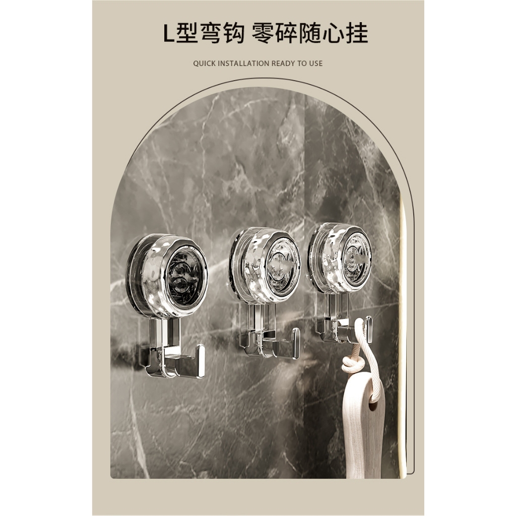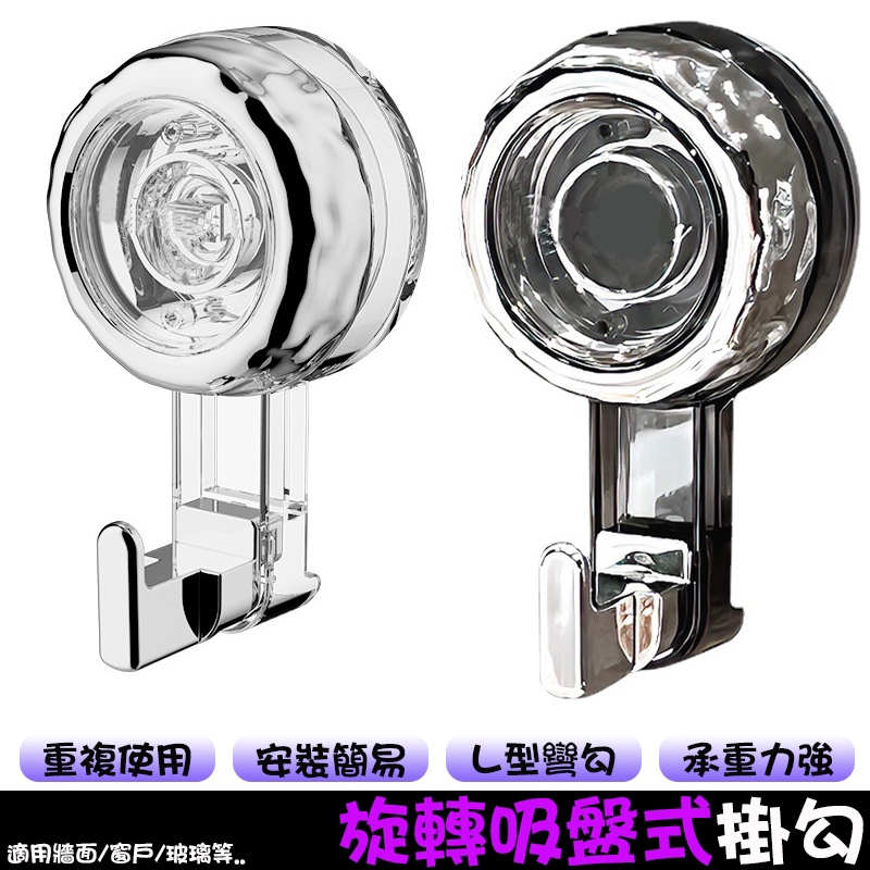 旋轉吸盤式掛勾 吸盤掛勾 L型掛勾 無痕掛勾 免打孔掛勾 造型掛勾 掛勾 掛鉤 旋轉掛鉤 吸盤掛鉤 浴室廚房墻壁掛鉤[透明銀色]|[透明灰銀]HooksADHIL旗艦店