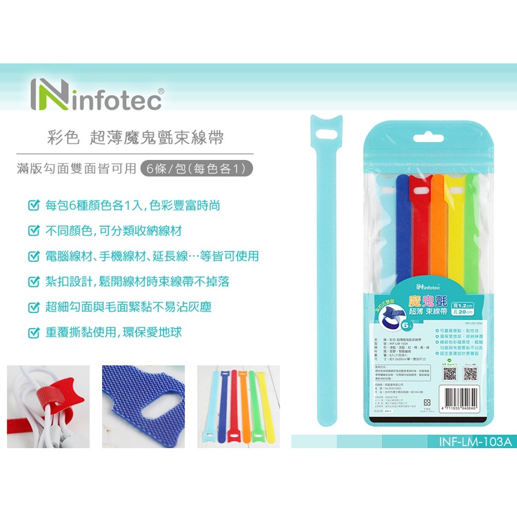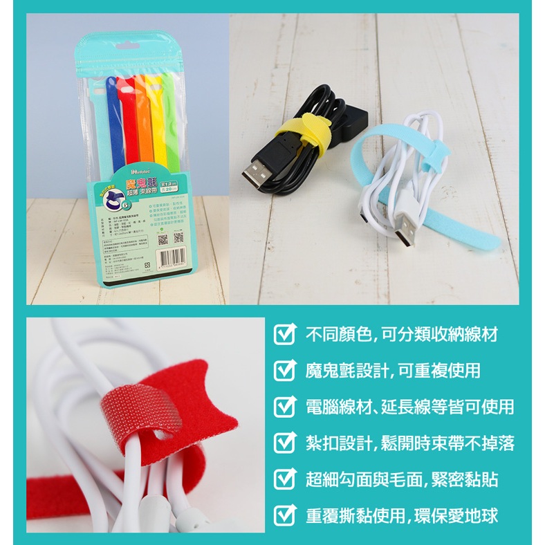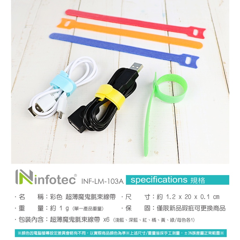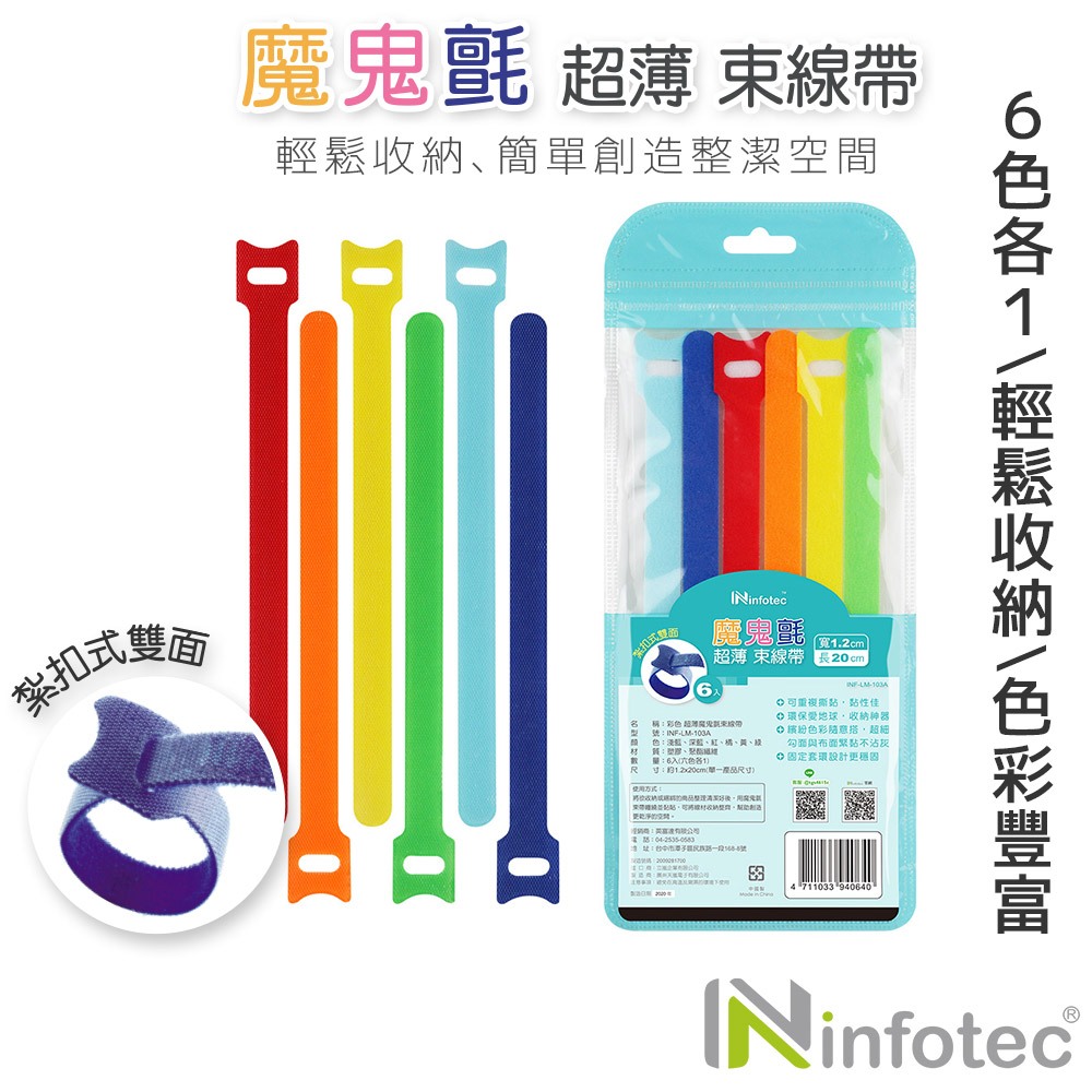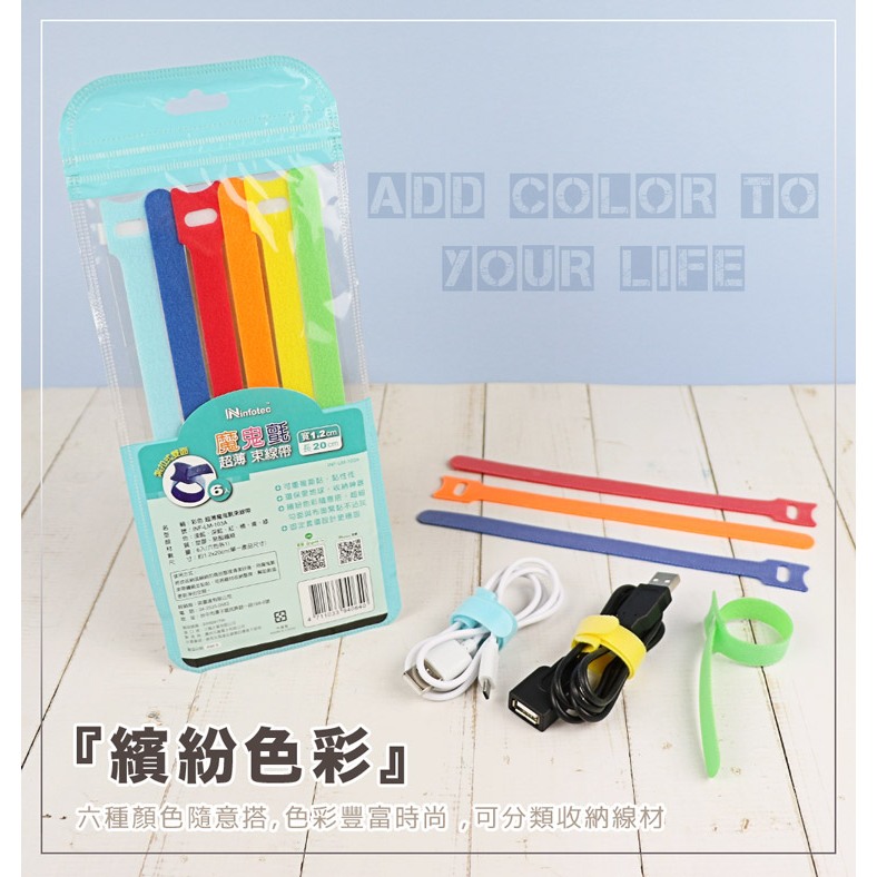 infotec 彩色 超薄魔鬼氈束線帶-6條/包 【現貨】束線帶 魔鬼氈 電線收納 收納 集線束帶 理線 魔鬼氈束帶1入|2入Othersaibo 3C生活館