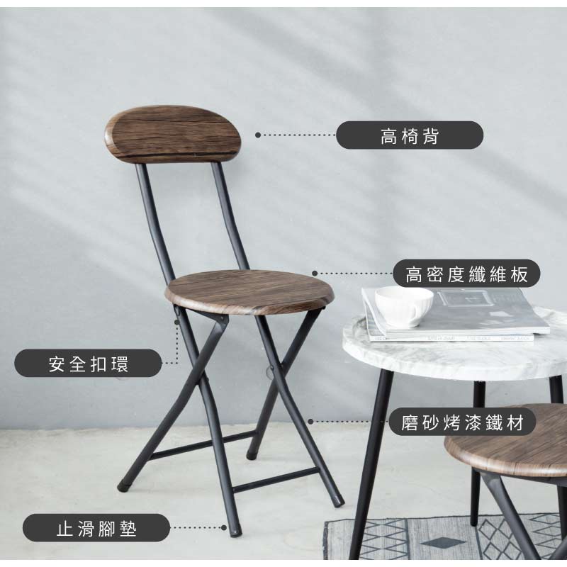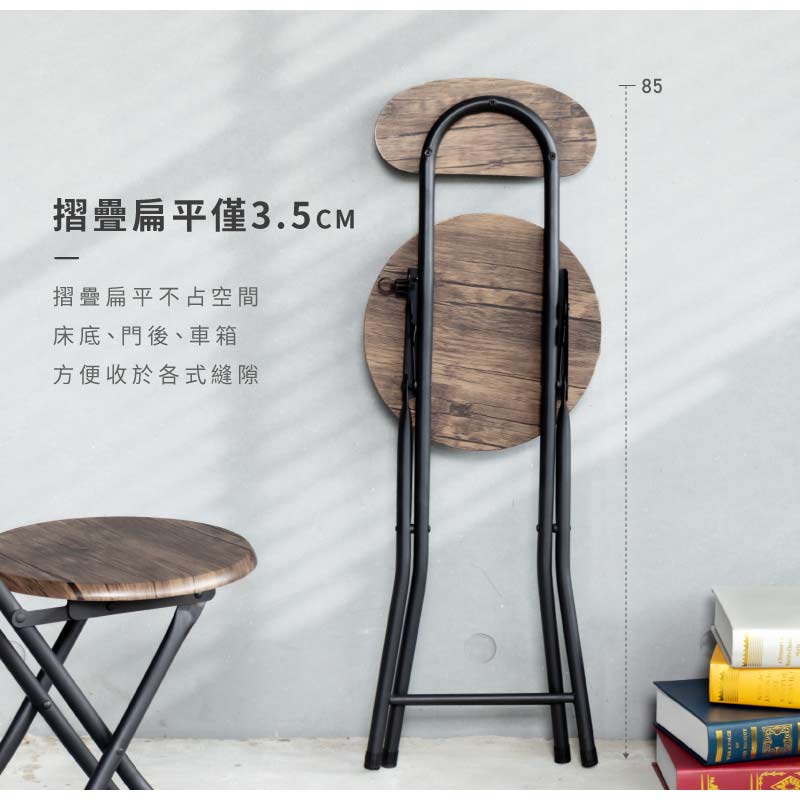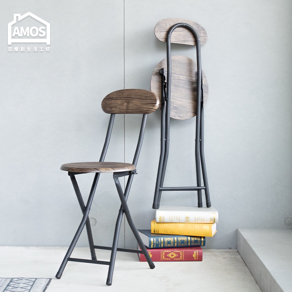 Amos 亞摩斯 復古木紋高背圓形折疊椅 摺疊椅 餐椅 吧檯椅 露營椅 戶外椅 YAW0131入|2入|6入Benches, Chairs & StoolsAmos亞摩斯