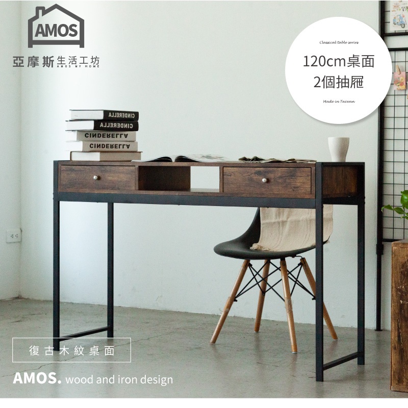 Amos 亞摩斯 輕工業復古風鐵框126公分書桌+兩抽屜 書桌 電腦桌 辦公桌 工作桌 DCA045Amos 亞摩斯 輕工業復古風鐵框126公分書桌+兩抽屜 書桌 電腦桌 辦公桌 工作桌 DCA045Desks & TablesAmos亞摩斯
