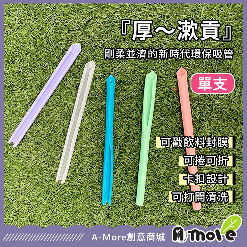 【A-MORE】『厚~漱貢』剛柔並濟的新時代環保吸管 吸管 可拆洗 戳膜 吸珍珠 環保矽膠吸管