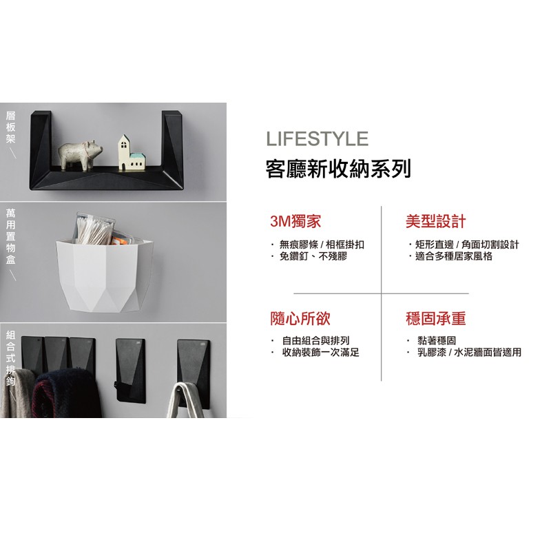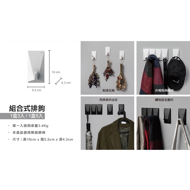 3M 無痕 LIFESTYLE-組合式排鉤免鑽掛勾 (白/黑)五鉤組白色(5鉤組)|黑色(5鉤組)Hooks3M 授權官方旗艦館