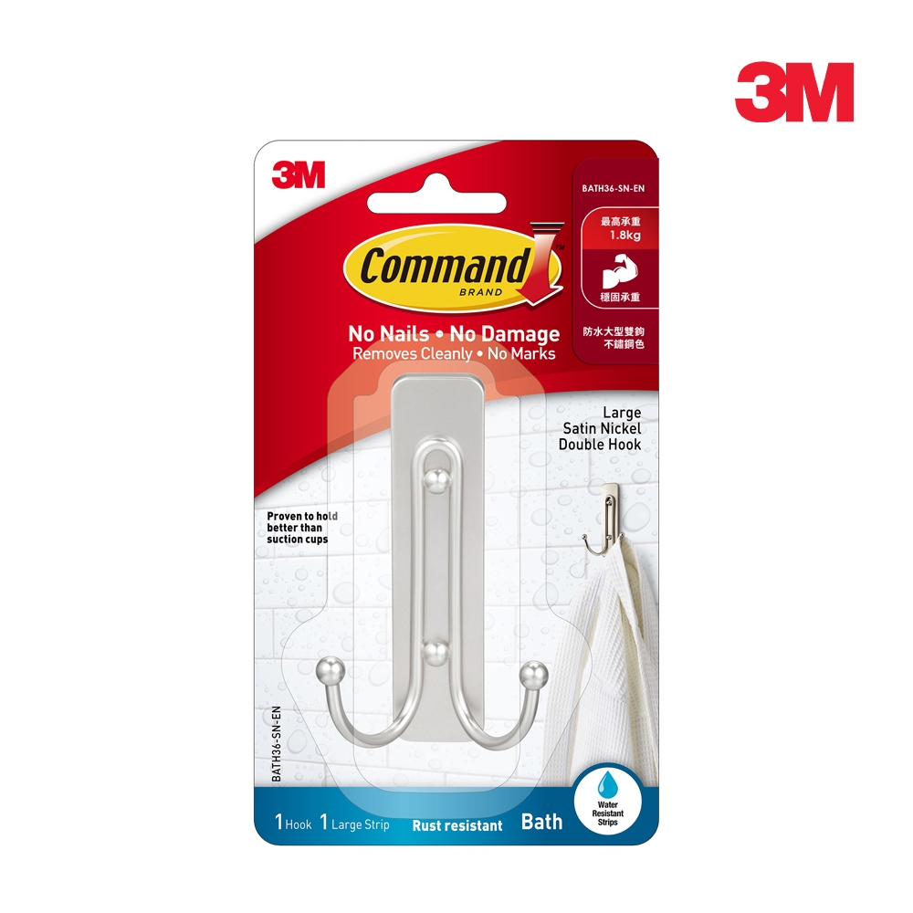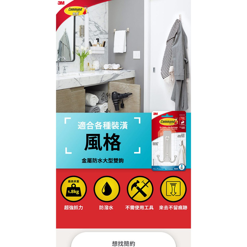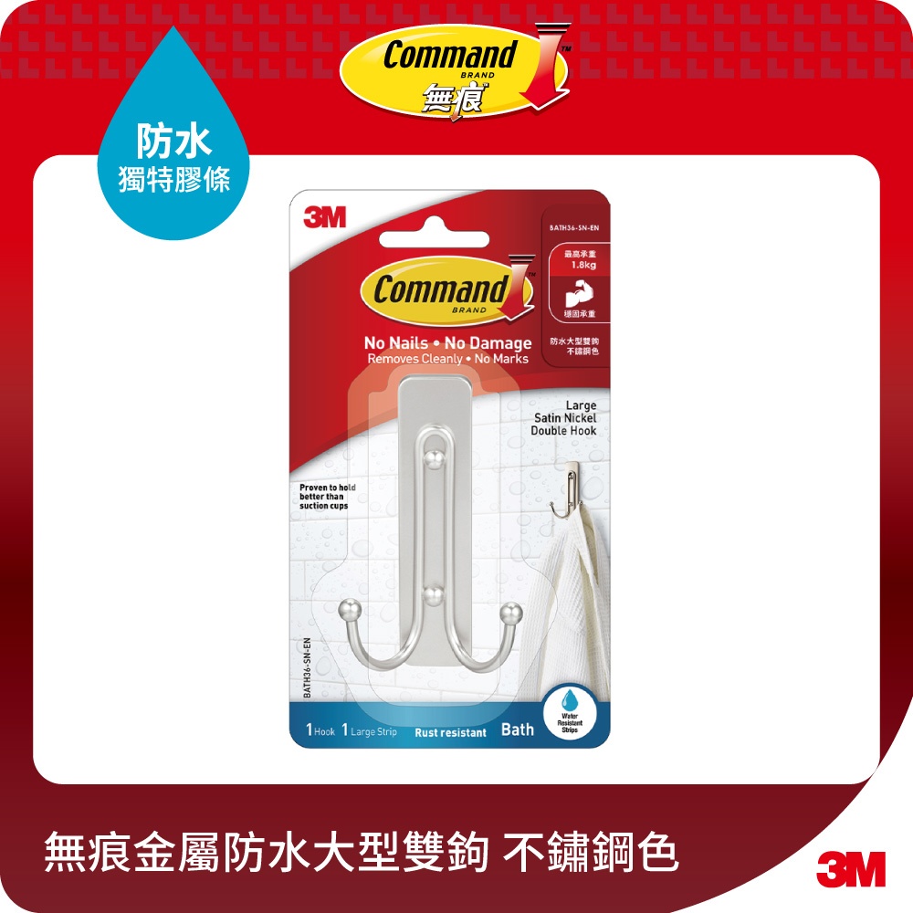 3M 無痕 金屬防水大型雙鉤 掛勾 BATH36-不鏽鋼色/霧黑色不鏽鋼色|霧黑色Hooks3M 授權官方旗艦館
