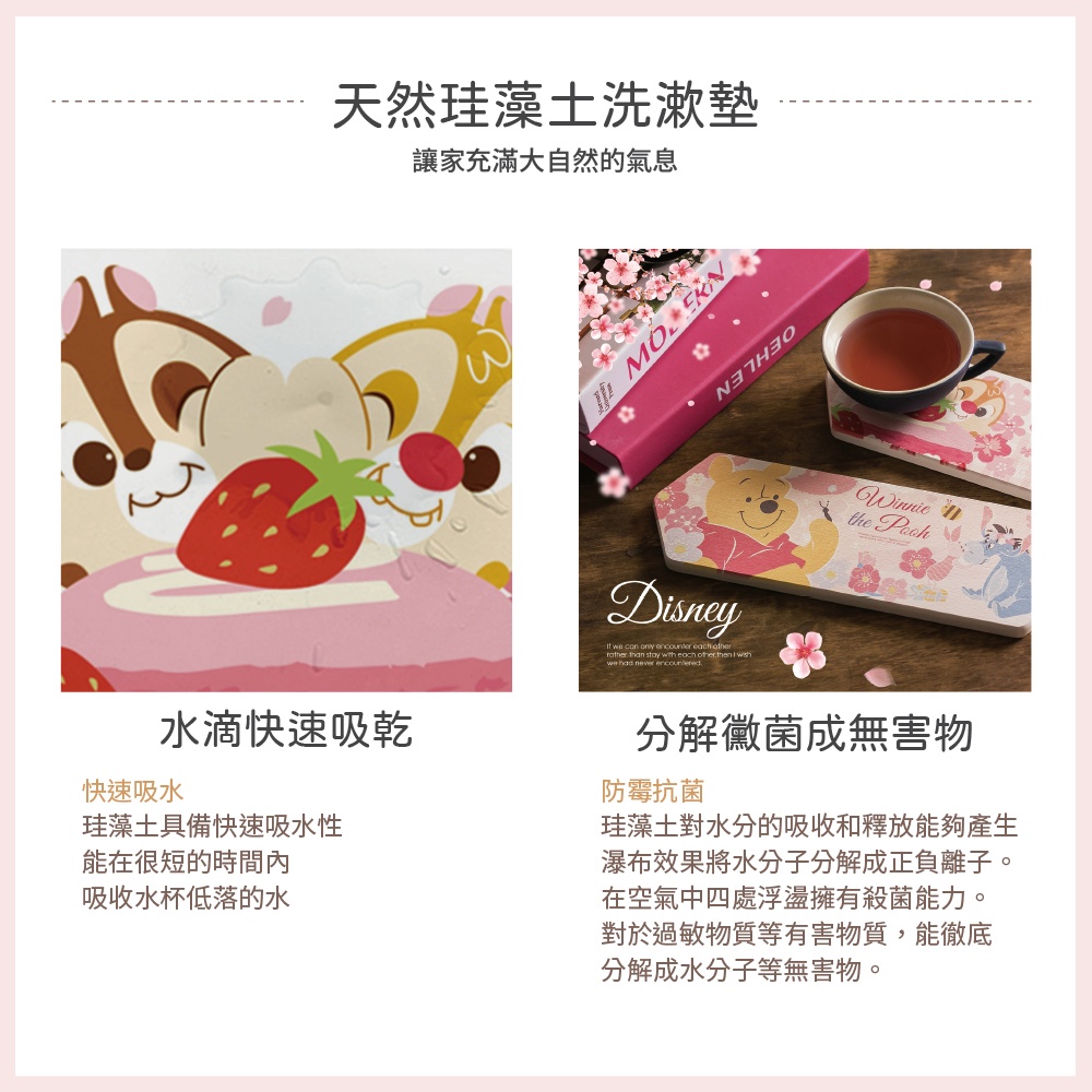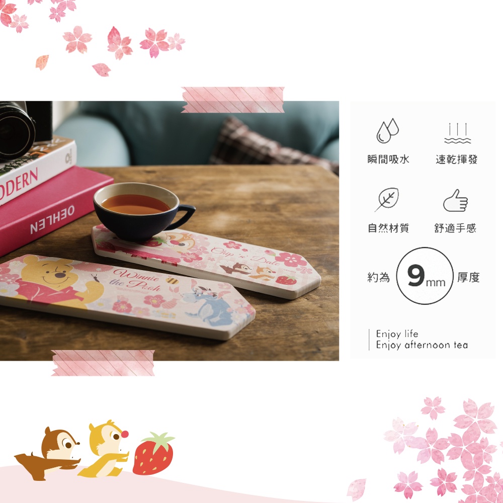 迪士尼 Disney 櫻花季 造型珪藻土洗漱墊24×8 奇奇蒂蒂 維尼 防潮 杯墊 硅藻土牙刷架【5ip8】DN0287奇奇蒂蒂|小熊維尼Placemats & Coasters5IP8居家生活館