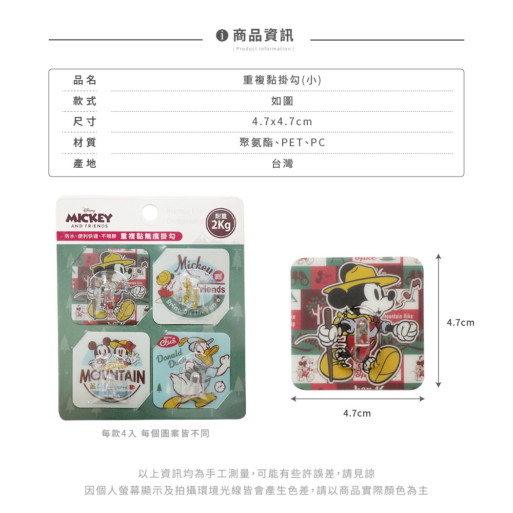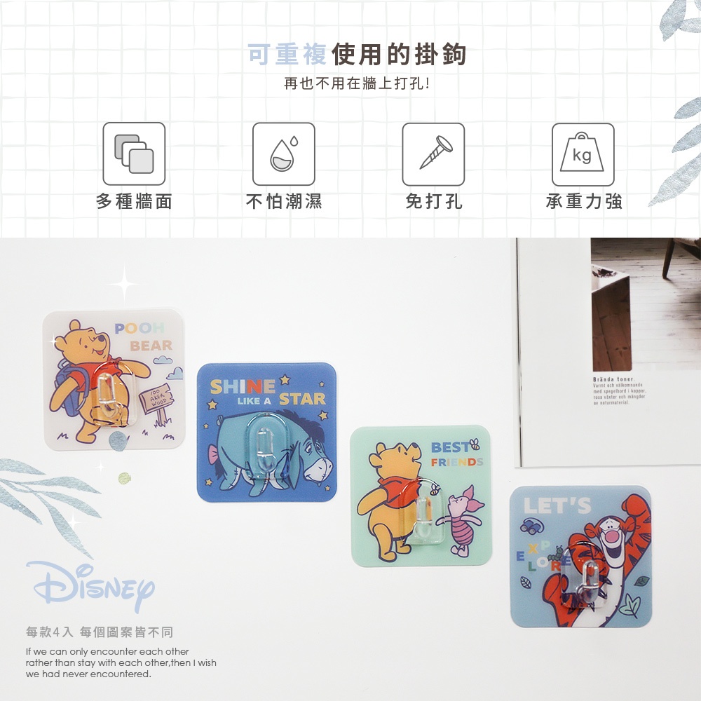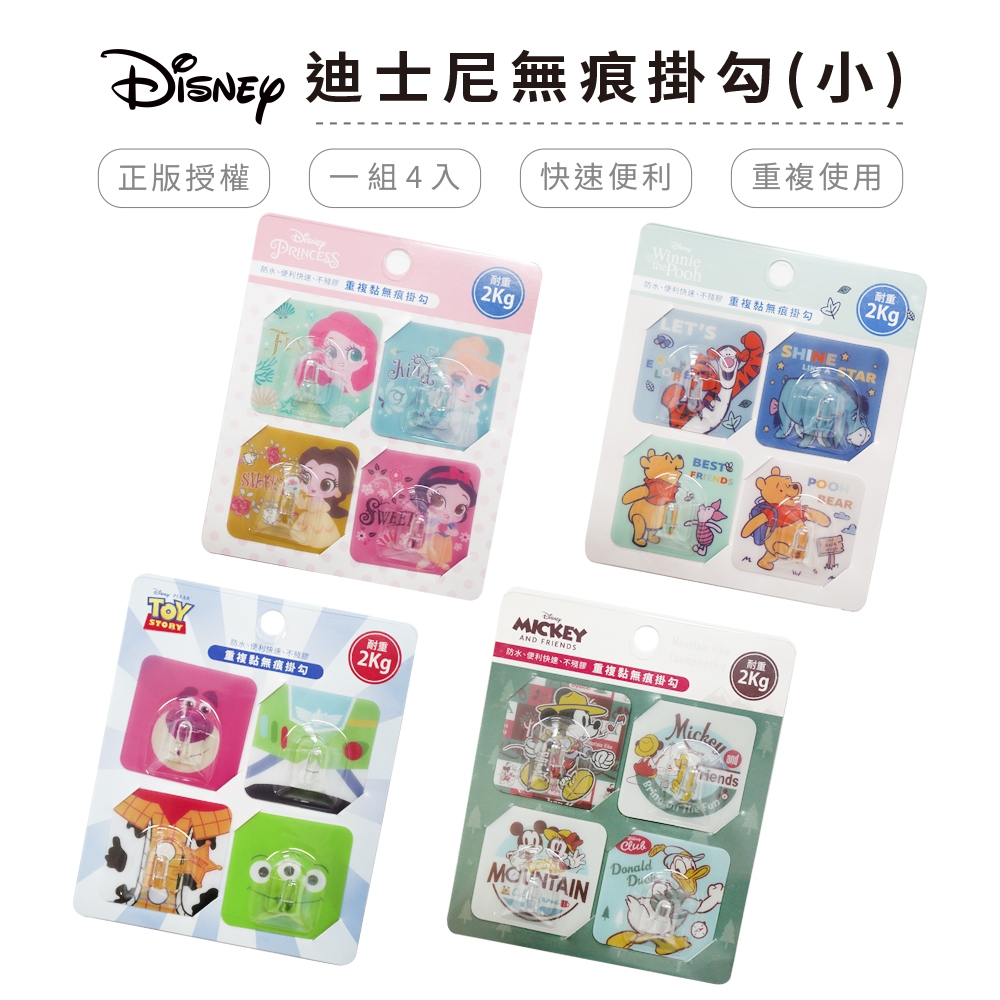 迪士尼 Disney 無痕掛勾(小) 一入4組 正版授權 迪士尼公主 小熊維尼 玩具總動員 米奇米妮 【5ip8】旅遊維尼|登山米奇|Q版公主|玩具總動員Hooks5IP8居家生活館