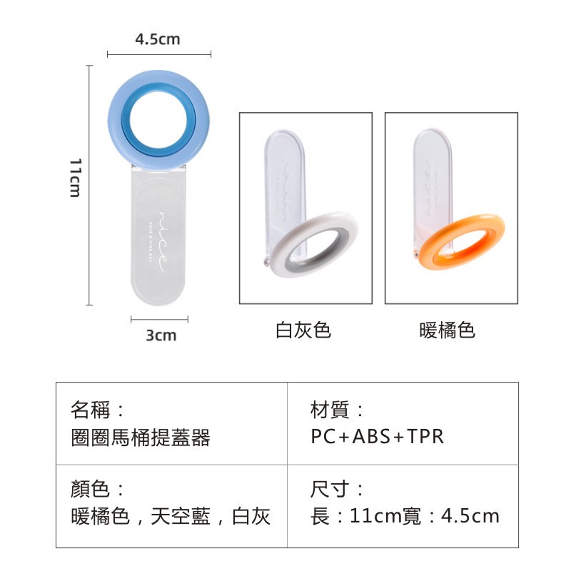 多功能提拉器 馬桶蓋把手 馬桶掀蓋器 掀蓋器 提拉器 馬桶輔助掀蓋器 適用冰箱/櫃子/馬桶蓋/ 輔助提蓋 馬桶掀蓋不沾手天空藍|暖橘色|白灰OthersADHIL旗艦店