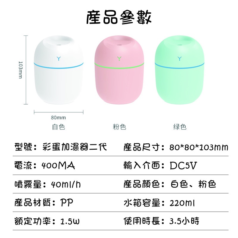 USB造型加濕器 補水器 小夜燈 迷你噴霧器 適用居家/車用/房間加濕 彩蛋形狀加濕器 氣氛燈 噴霧保濕 補水儀 噴霧機白色|粉色|薄荷綠Diffusers, Humidifiers & Oil BurnersADHIL旗艦店