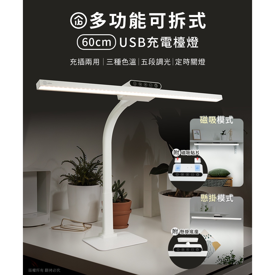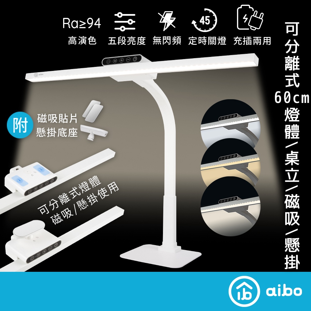 aibo 多功能可拆式 60cm桌立/懸掛/磁吸LED檯燈(USB充電) 【現貨】多功能 可拆 充電式 五段亮度全新品|全新品-泡棉膠不同aibo 3C生活館