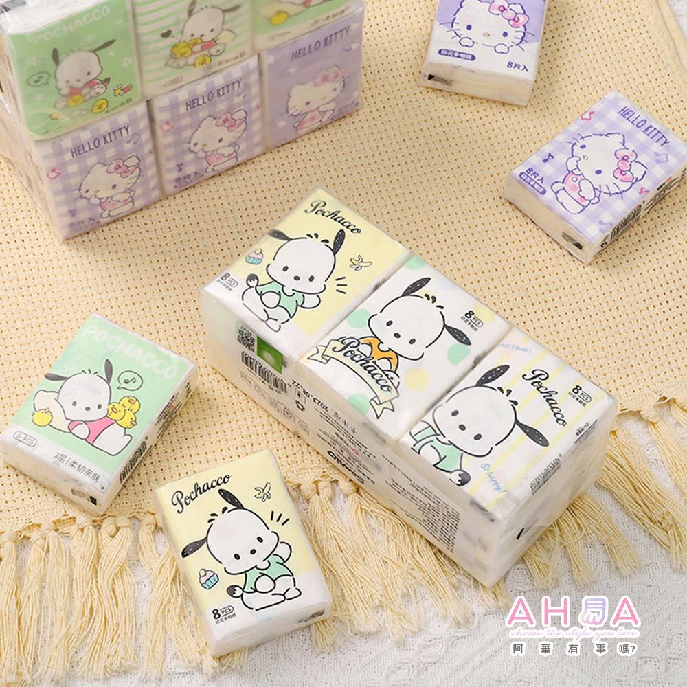 AHUA 阿華有事嗎 三麗鷗迷你隨身印花手帕紙(9包入) F0075 隨身包 攜帶型 印花 衛生紙紫色Kitty|粉色Kitty|三色Kitty|黃色帕恰狗|藍色帕恰狗|三色帕恰狗Tissue & Paper TowelsAHUA 韓國襪子品牌旗艦店